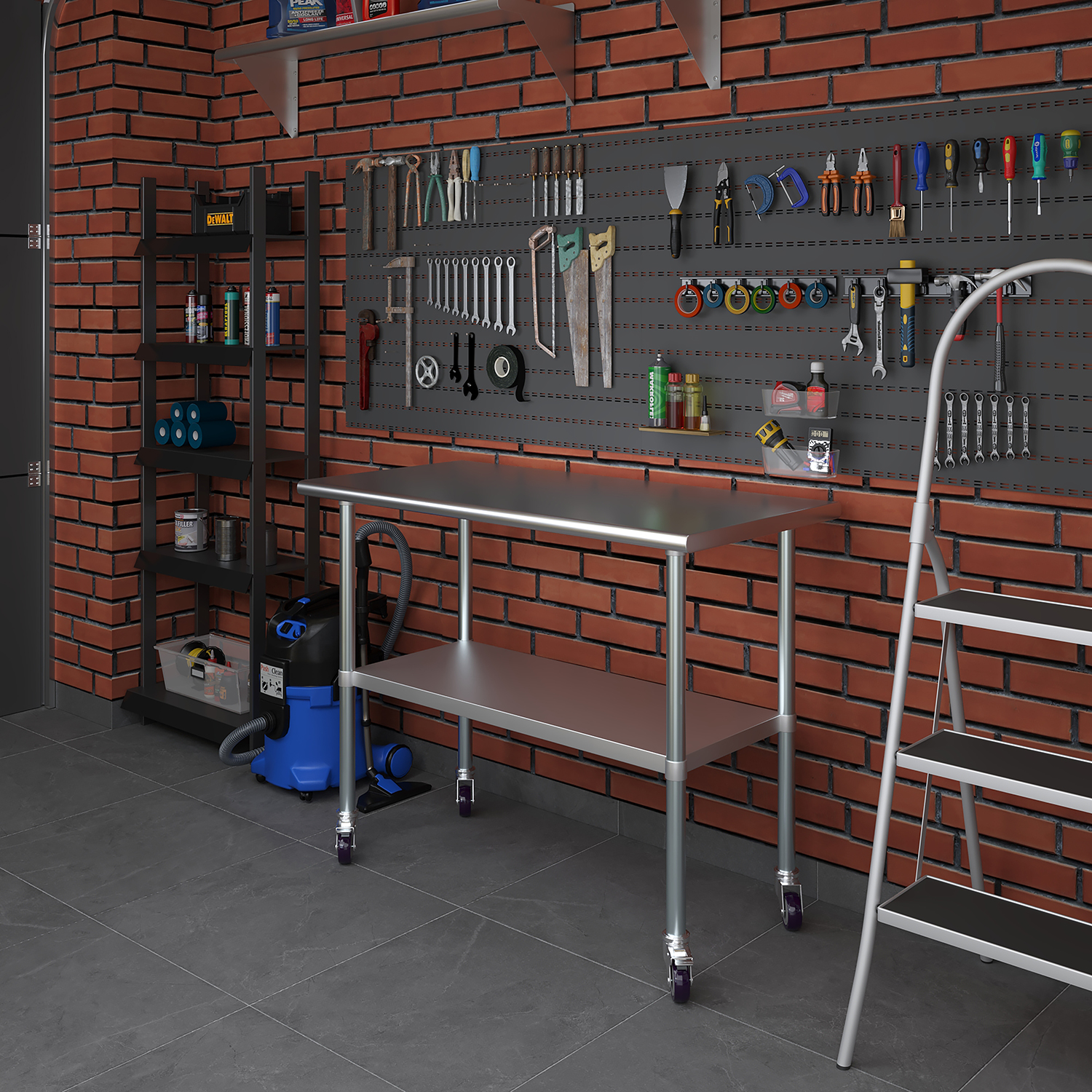The inclusion of an undershelf provides additional storage capacity, allowing you to keep essential tools, supplies, and equipment within easy reach. This feature enhances organization and efficiency, ensuring a clutter-free workspace and minimizing the need for constant movement around your area. The sturdy undershelf can support substantial weight, making it suitable for storing heavy items securely.