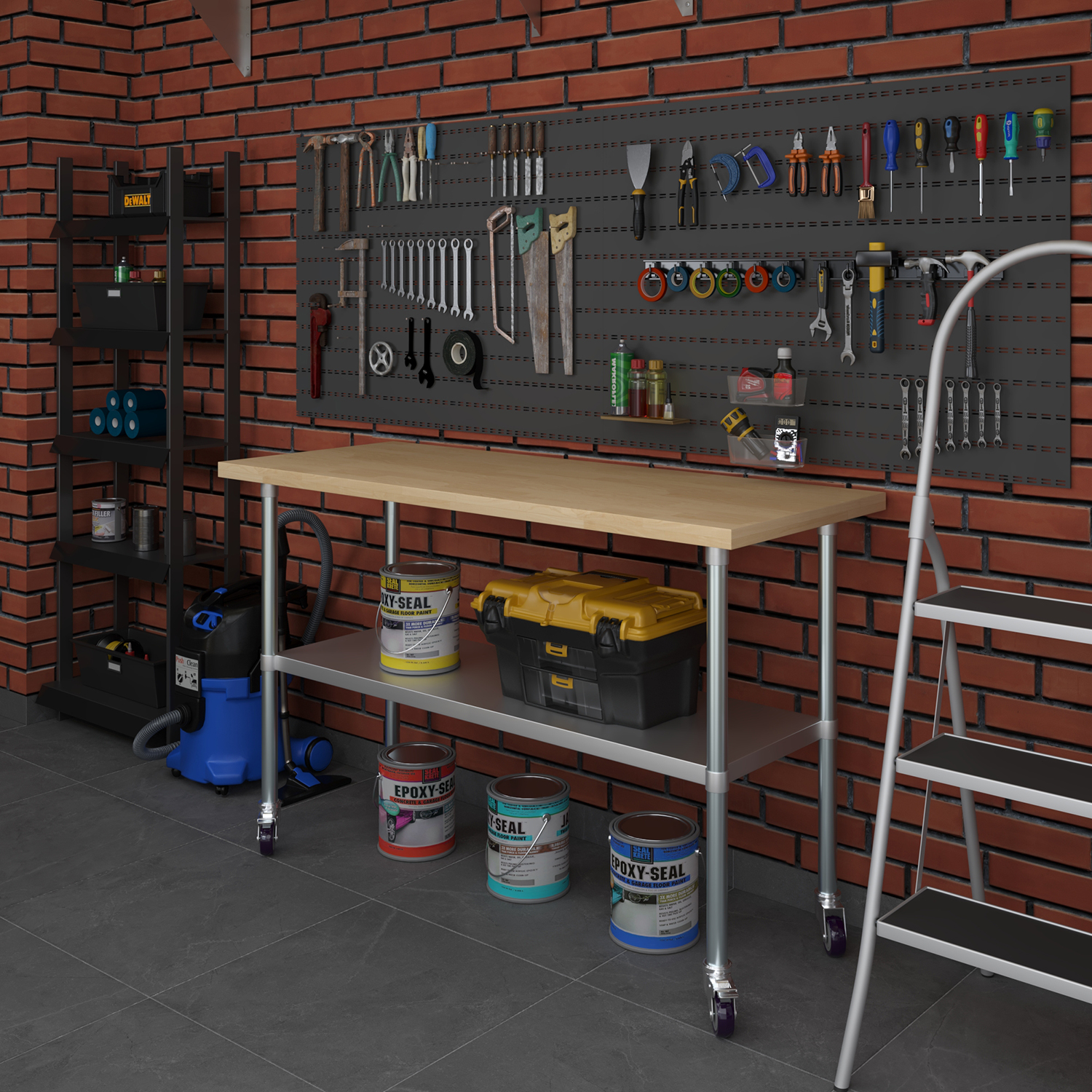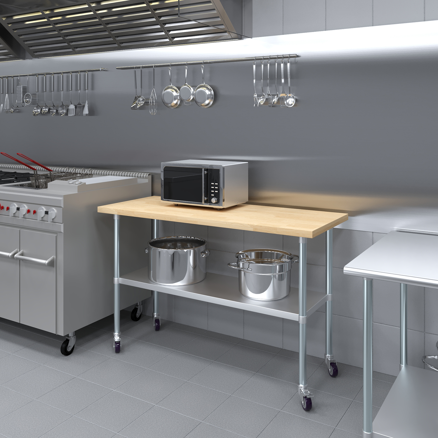 Ideal for both residential and commercial applications, our 24″ x 60″ Maple Wood Top Work Table with Adjustable Undershelf and Wheels is a perfect addition to any workspace. Enhance your kitchen, workshop, or commercial environment with this stylish and practical work table, and experience the benefits of improved organization, efficiency, and mobility. Invest in a quality, versatile work table designed to meet the highest standards of professional use and transform your workspace today.