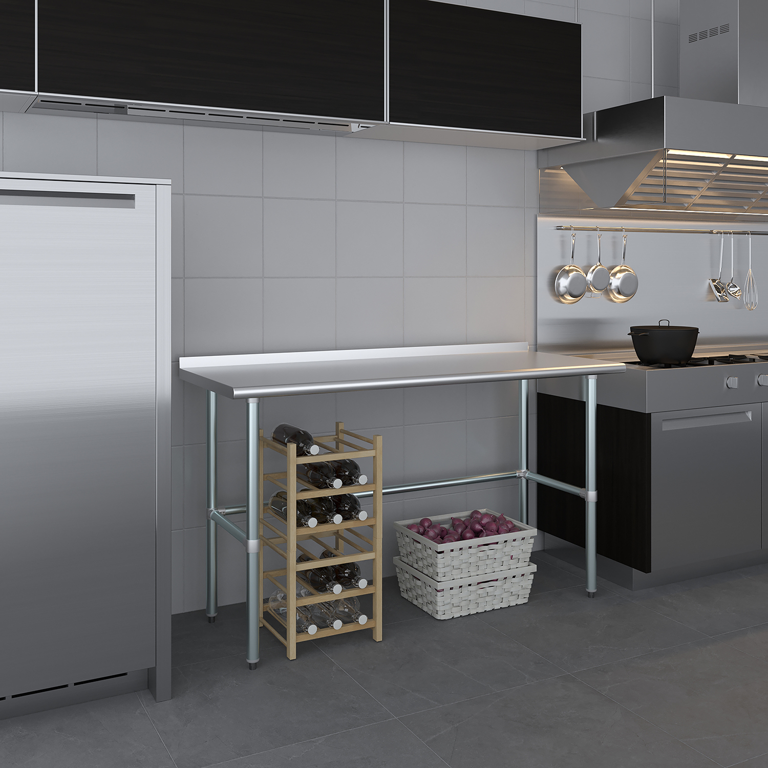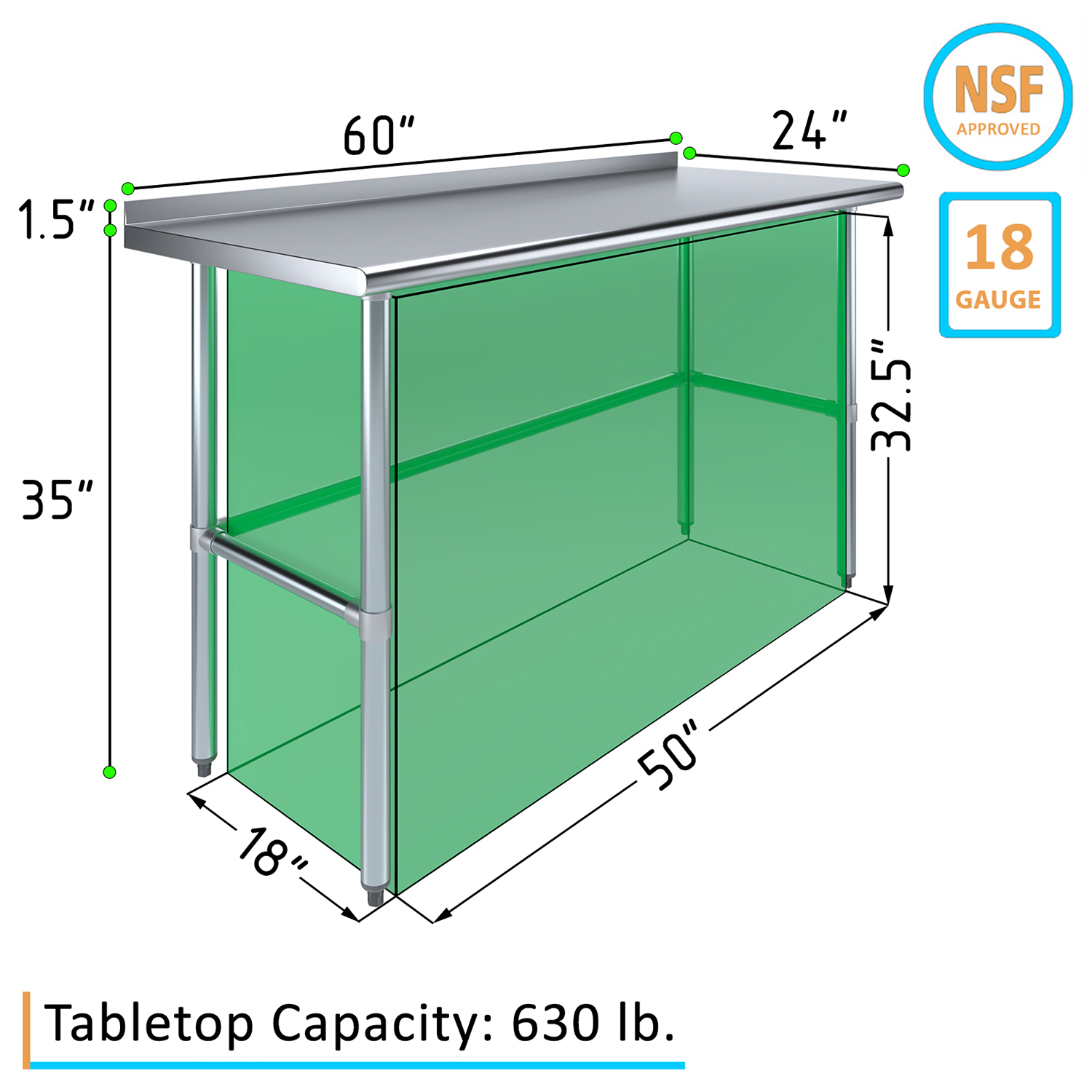 The 1.5″ backsplash is designed to contain spills and splashes, protecting your walls and maintaining a clean and sanitary work area. This feature is especially useful in food preparation settings, where hygiene is paramount. The sleek, smooth surface of the table allows for effortless cleaning, helping you maintain high standards of cleanliness with minimal effort.