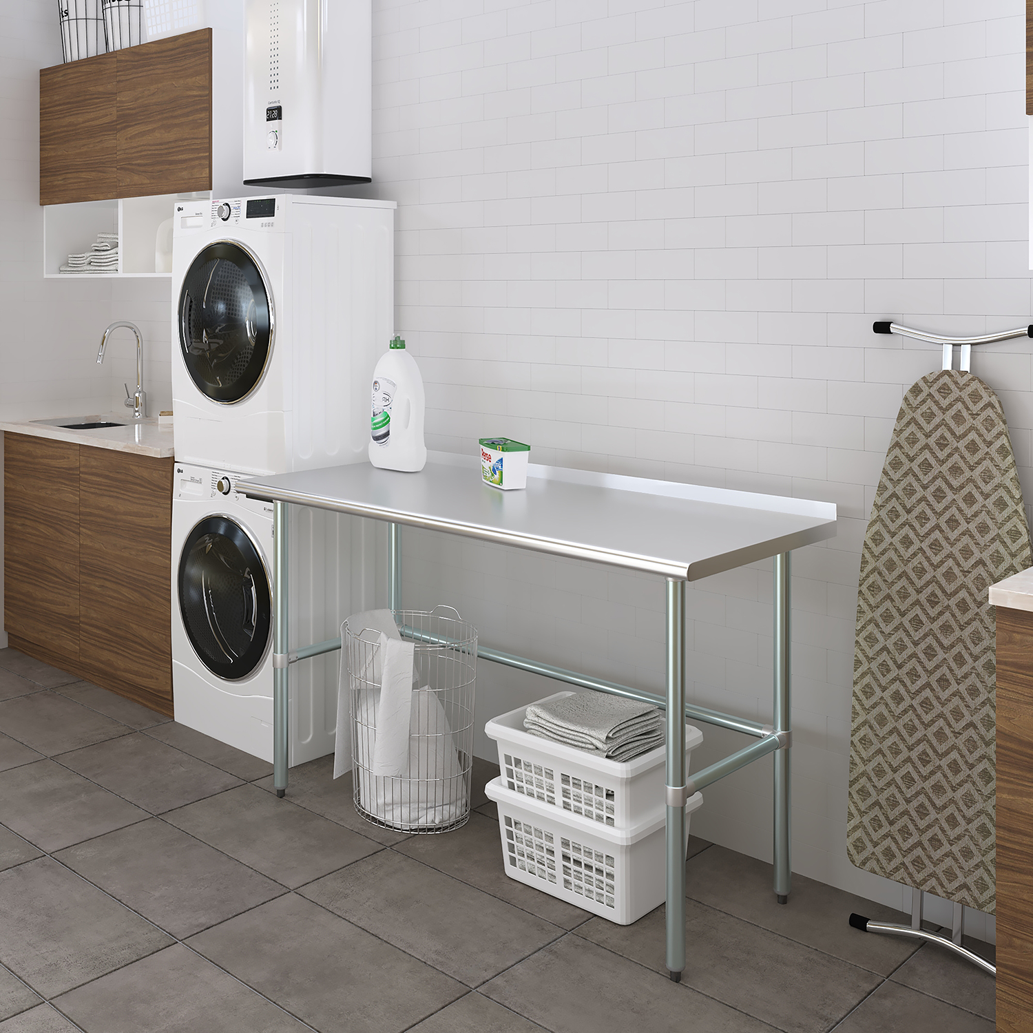 Measuring 24 inches by 60 inches, this work table provides an extended workspace that accommodates a variety of tasks. The generous length offers ample space for food preparation, assembly work, experiments, and other detailed projects. Despite its extensive size, the table maintains a compact design that fits well into different settings without occupying excessive space.