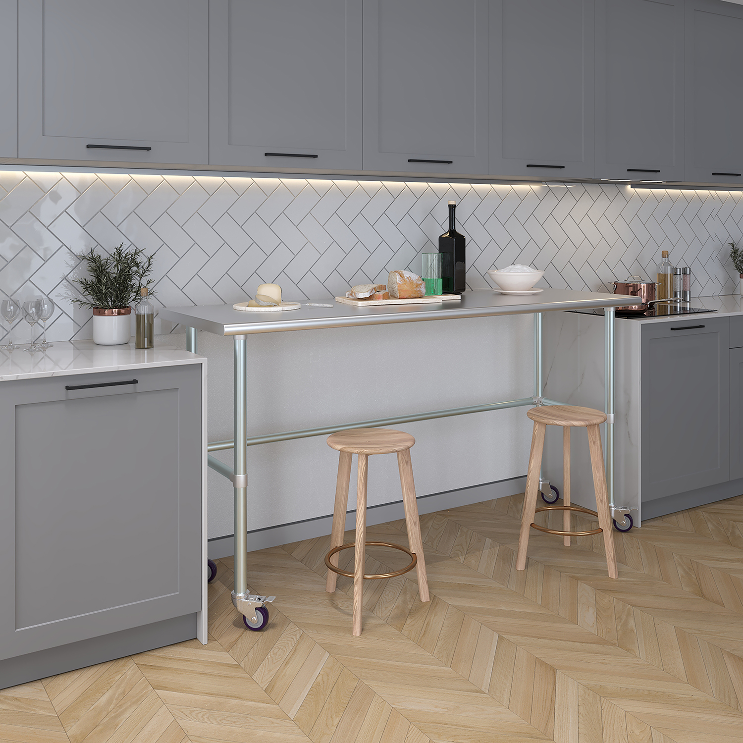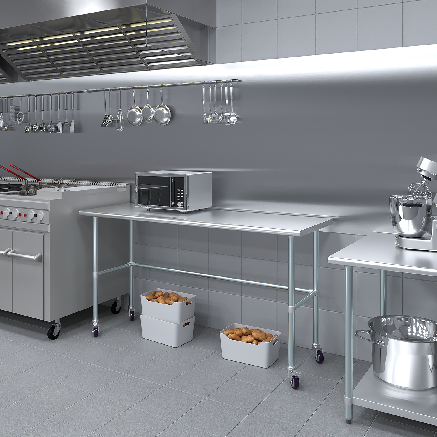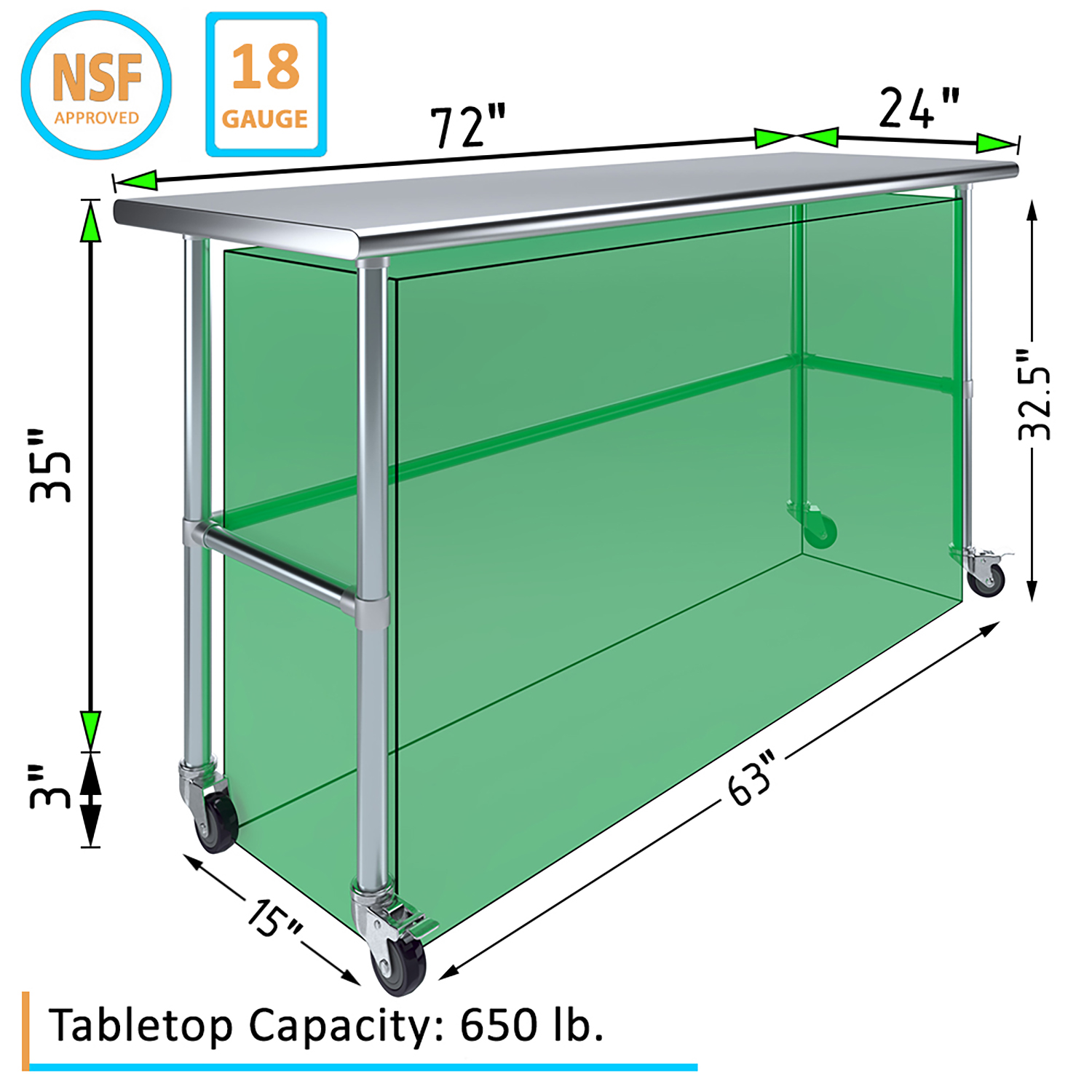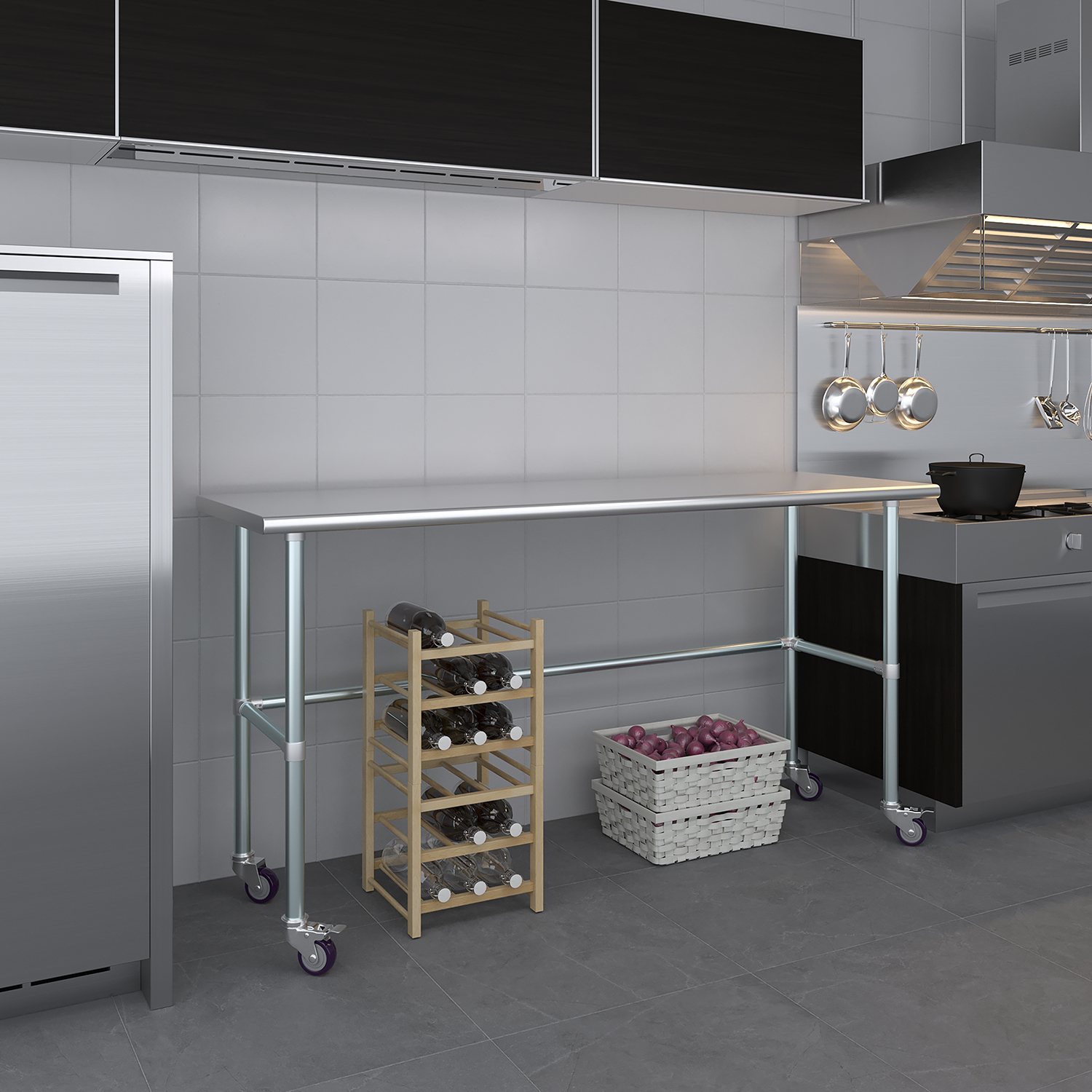 24″ X 72″ Stainless Steel Work Table With Open Base & Wheels
