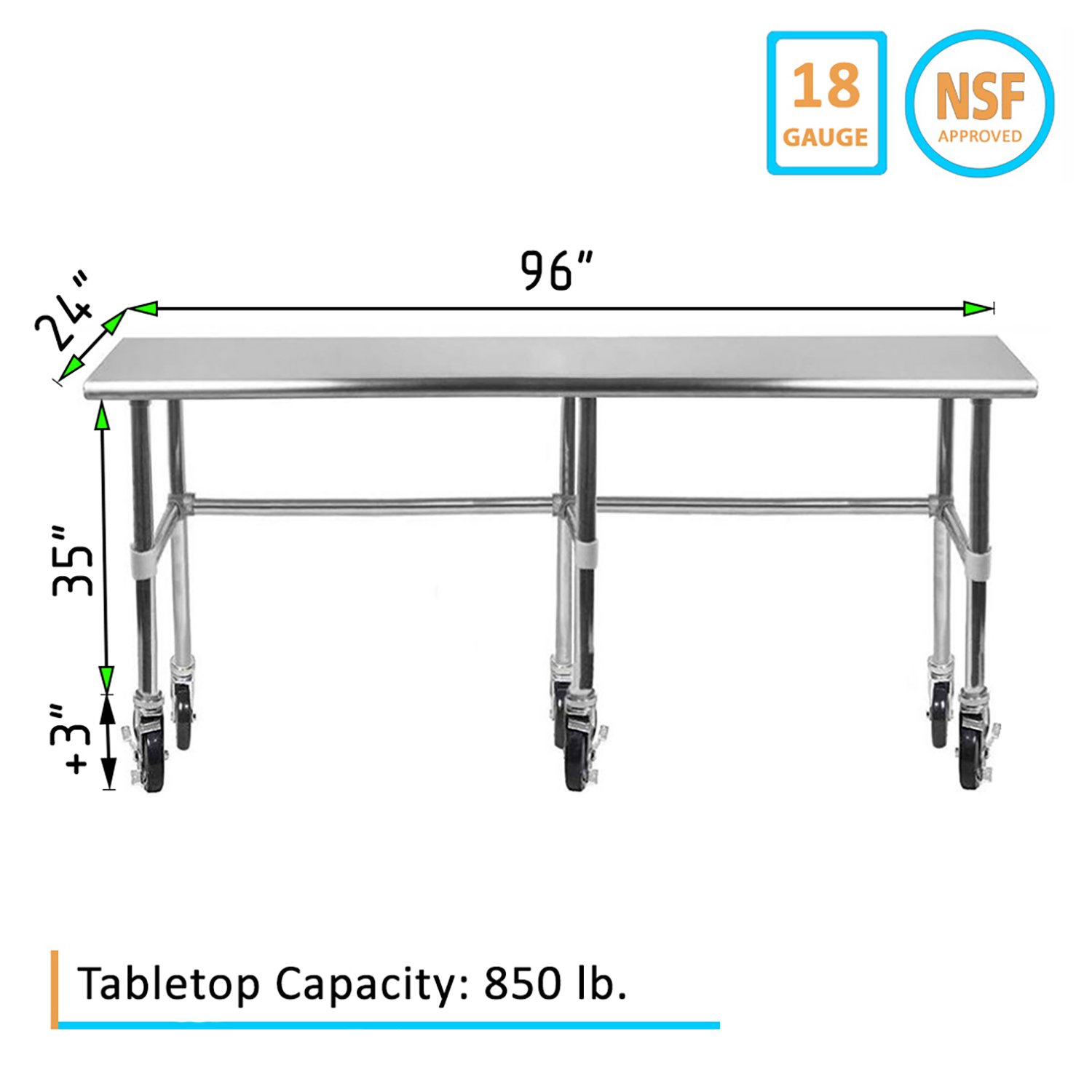 24″ X 96″ Stainless Steel Work Table With Open Base & Wheels