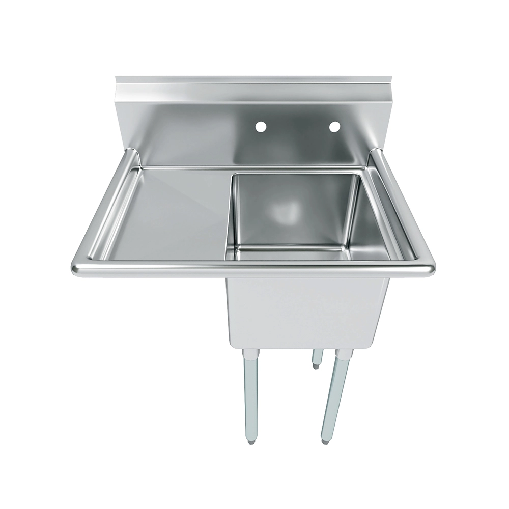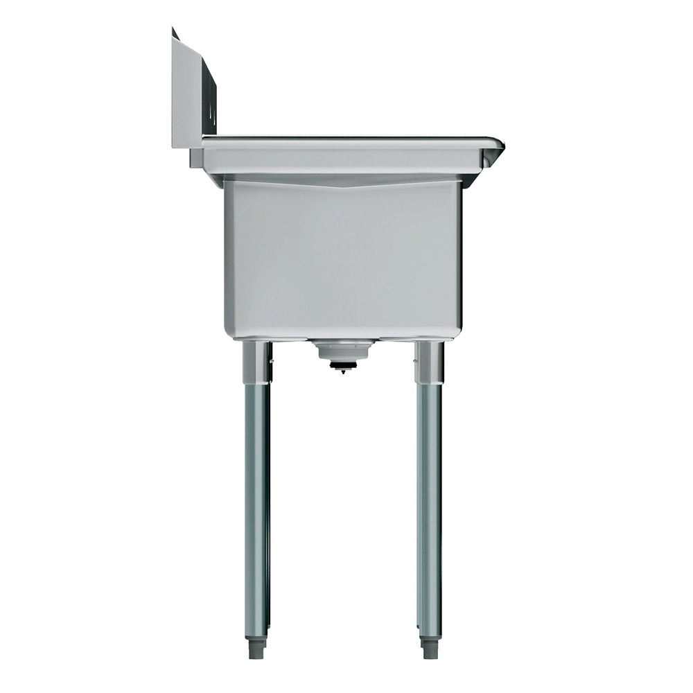 The spacious one-compartment sink offers ample room for washing large pots, pans, utensils, and other items, making it ideal for high-volume use. Its deep bowl design helps contain water and reduce splashes, maintaining a cleaner and more organized workspace. The durable construction ensures stability and reliability, making it suitable for heavy-duty applications.