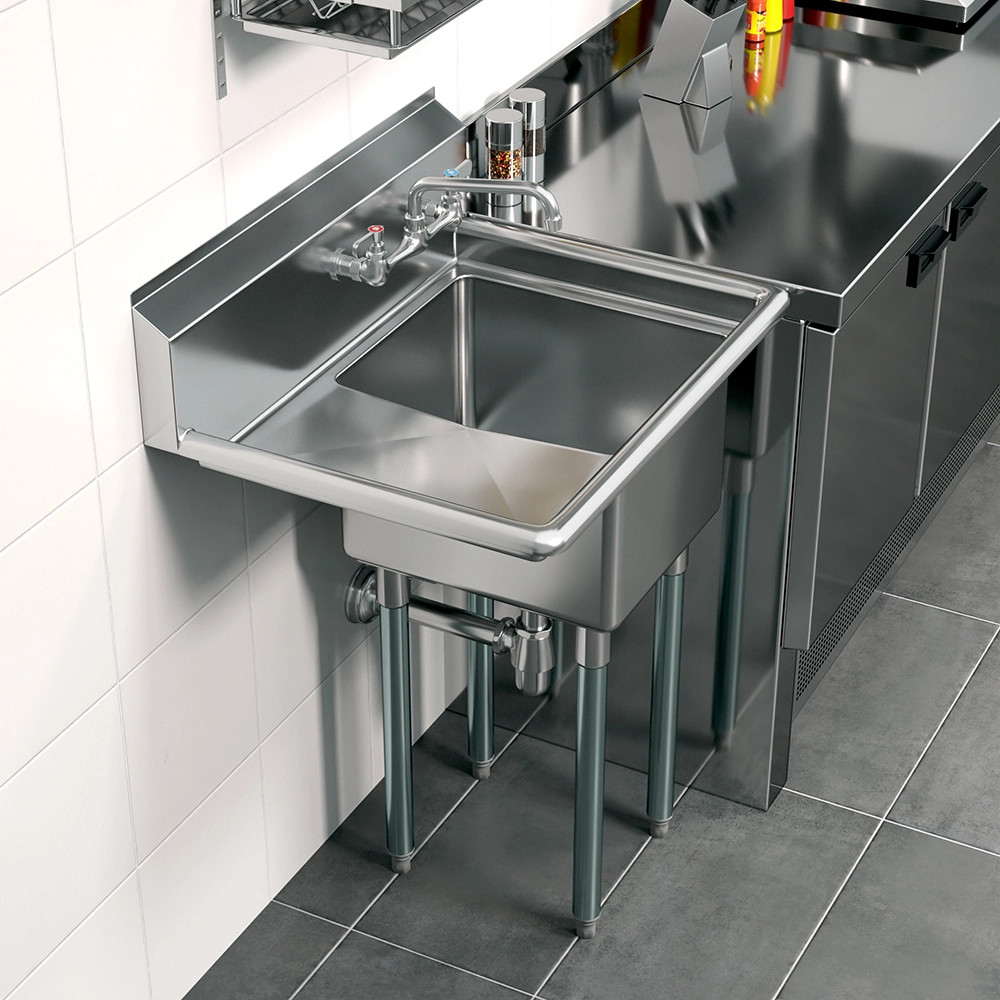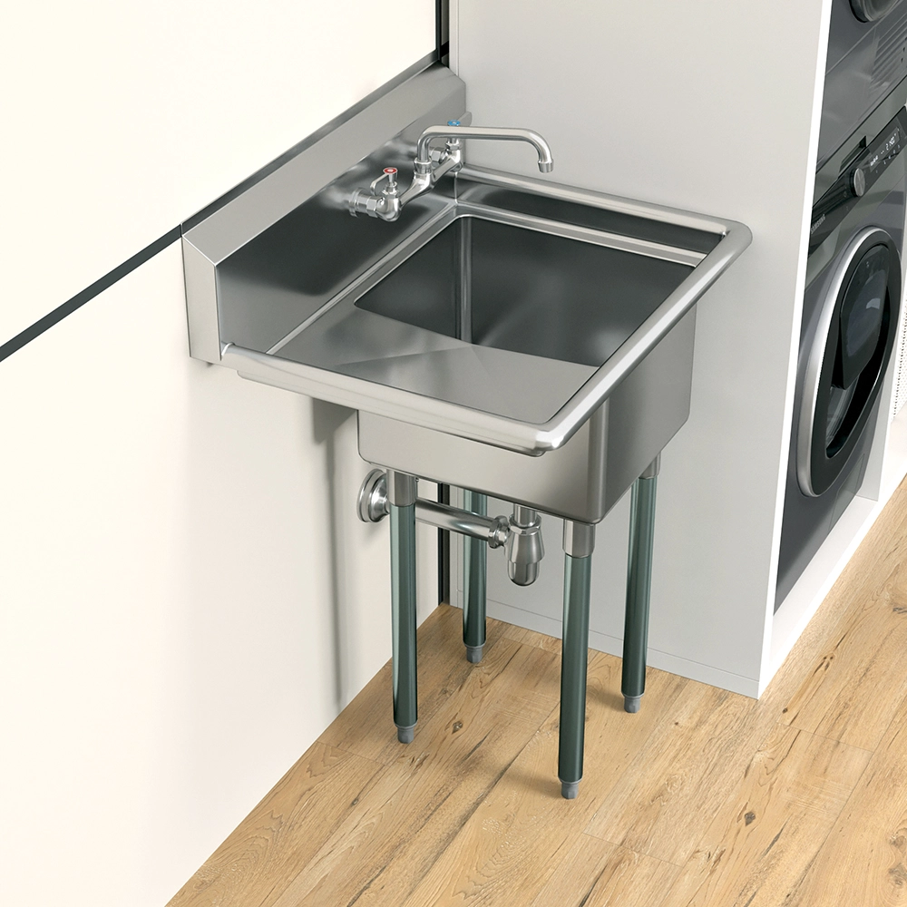 Perfect for restaurants, cafes, utility rooms, and workshops, this sink is built to handle the rigors of daily use while maintaining its sleek appearance. Its compact footprint makes it a versatile choice for spaces where efficiency and organization are essential.
