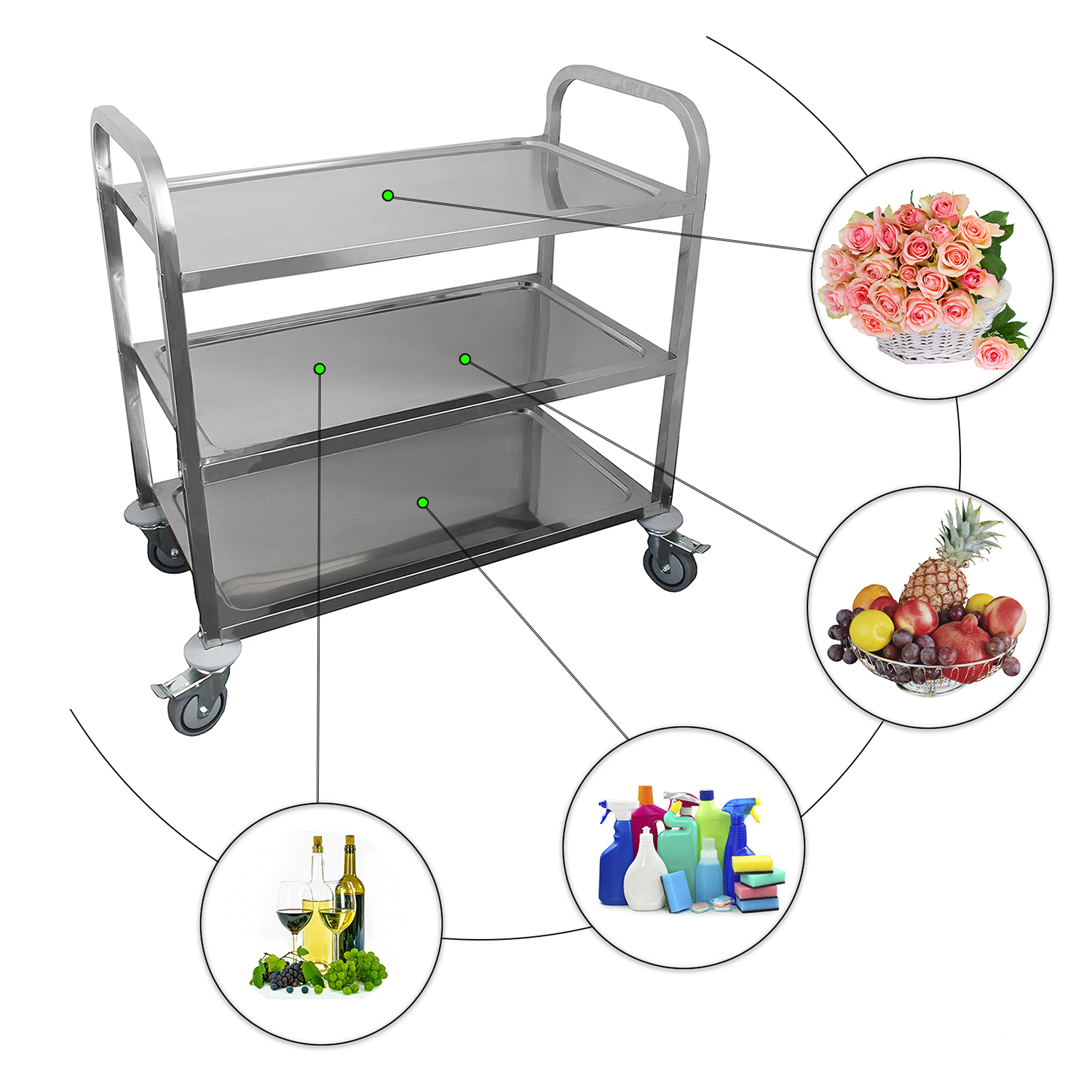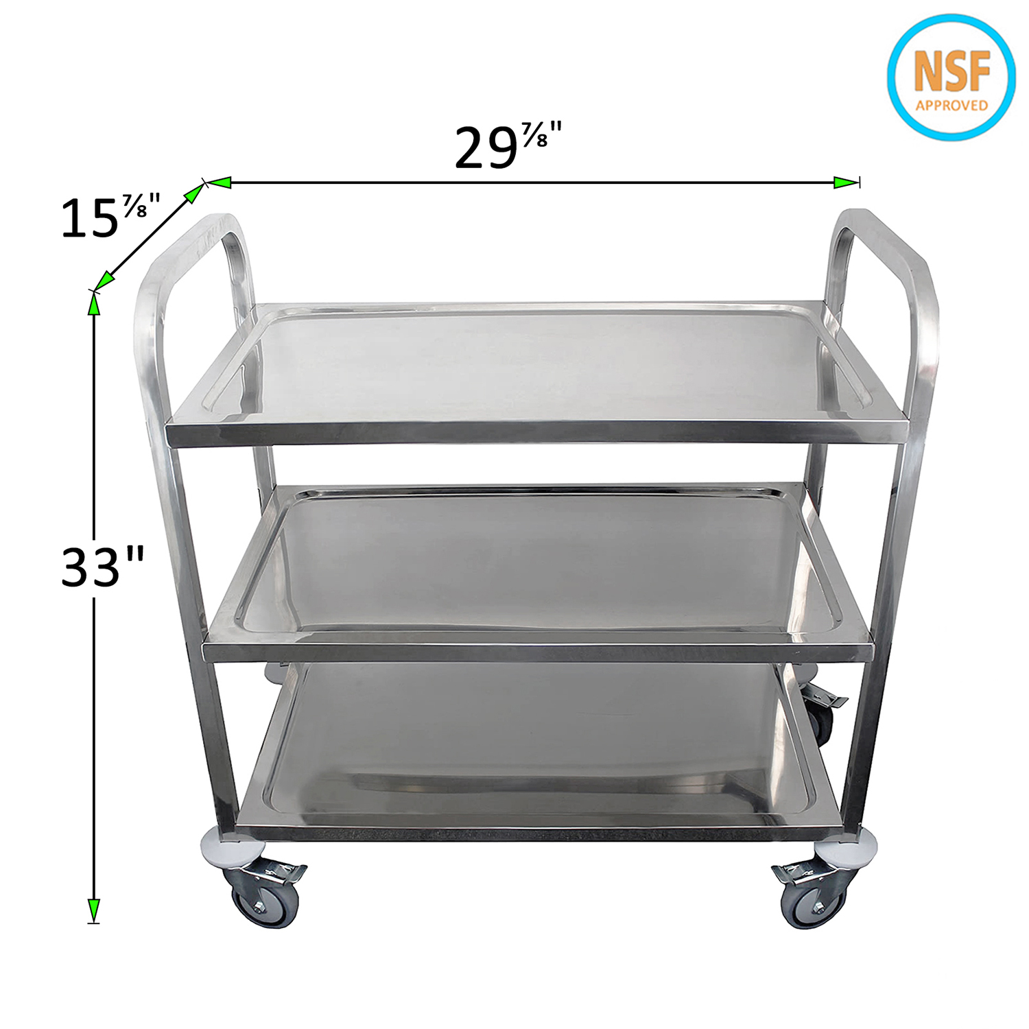 30 in. Legth X 16 in. Width Stainless Steel Dining Cart 3 Shelf With Wheels – Heavy Duty