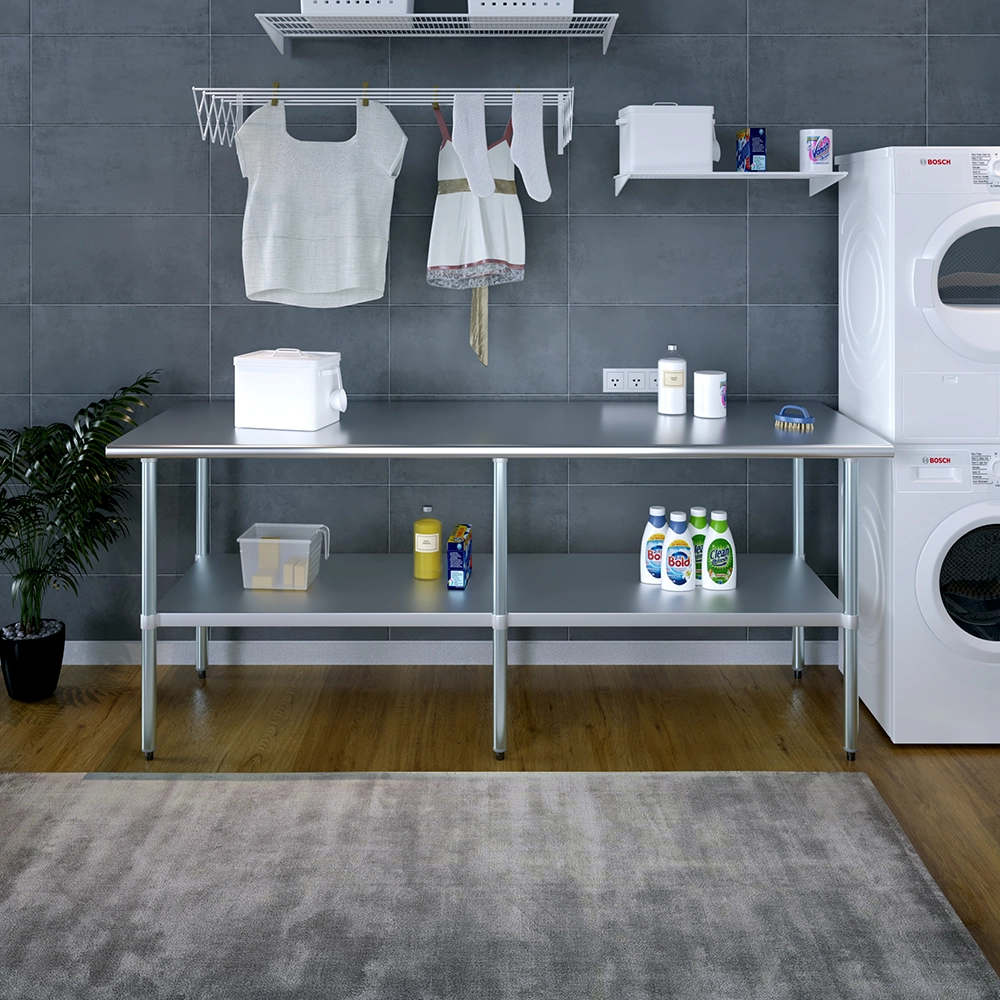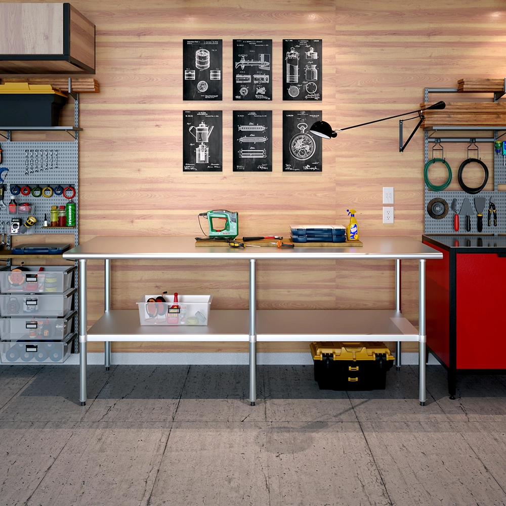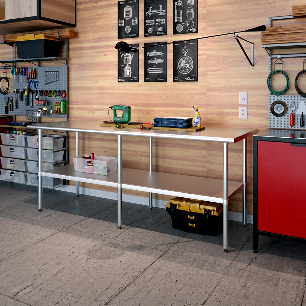 A key feature of this work table is the adjustable undershelf, which offers additional storage space for tools, supplies, and equipment. This undershelf can be positioned at your preferred height, allowing for customized storage solutions that meet your specific needs. Whether you need to store heavy equipment or small utensils, this versatile shelf enhances the functionality of your workspace by keeping essential items within easy reach.