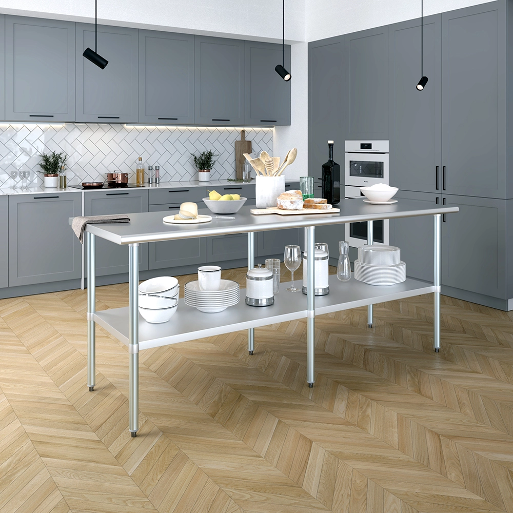 Ideal for a wide range of applications, from commercial kitchens and catering services to laboratories and workshops, the 30 in. X 84 in. Stainless Steel Work Table with Undershelf is a practical and stylish addition that enhances productivity and organization. Its sleek, professional appearance complements any setting, while its durable construction guarantees long-lasting performance.