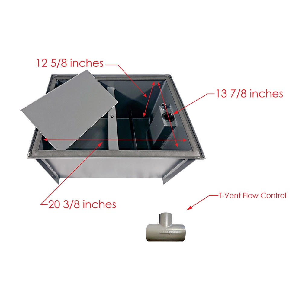 Internal baffles and flow control design maximize grease capture while maintaining steady flow. Easy to service and keeps plumbing clear of clogs.