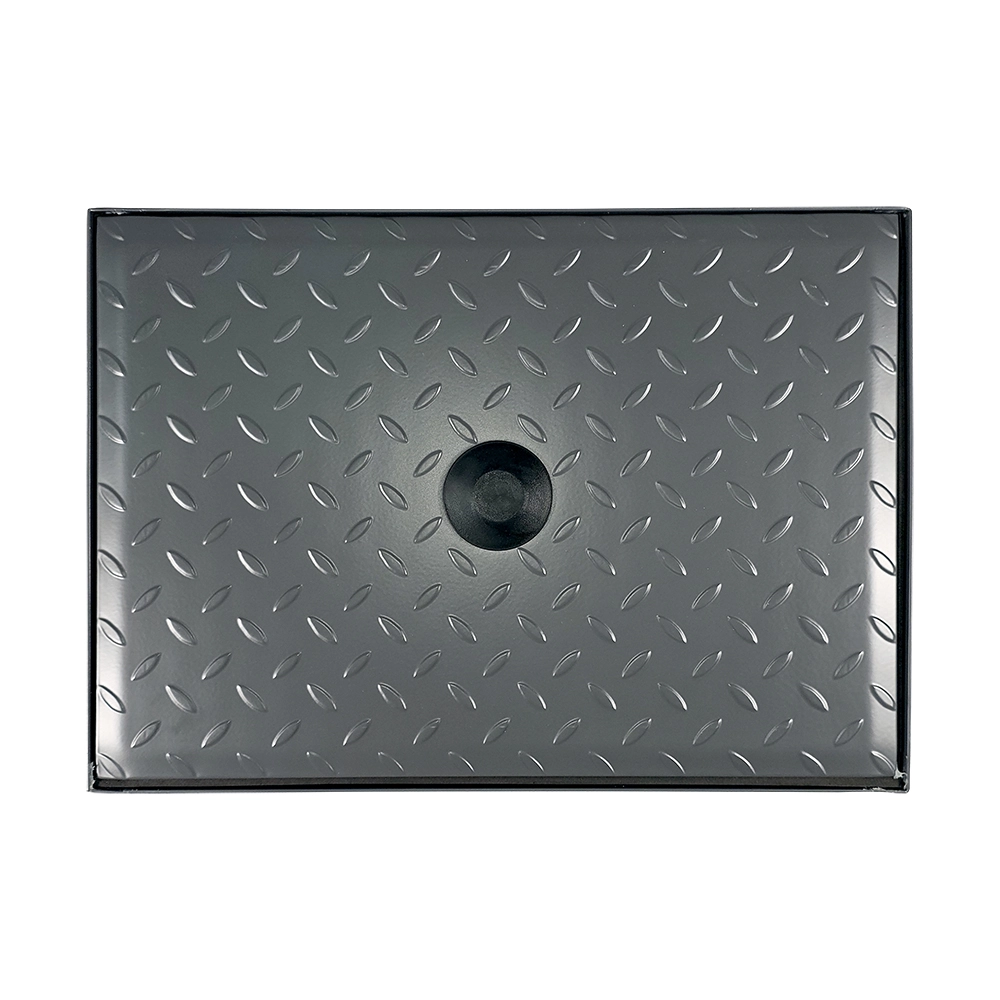 Diamond plate cover with a center bolt ensures a tight seal. Keeps unpleasant odors contained and maintains a clean, professional environment.