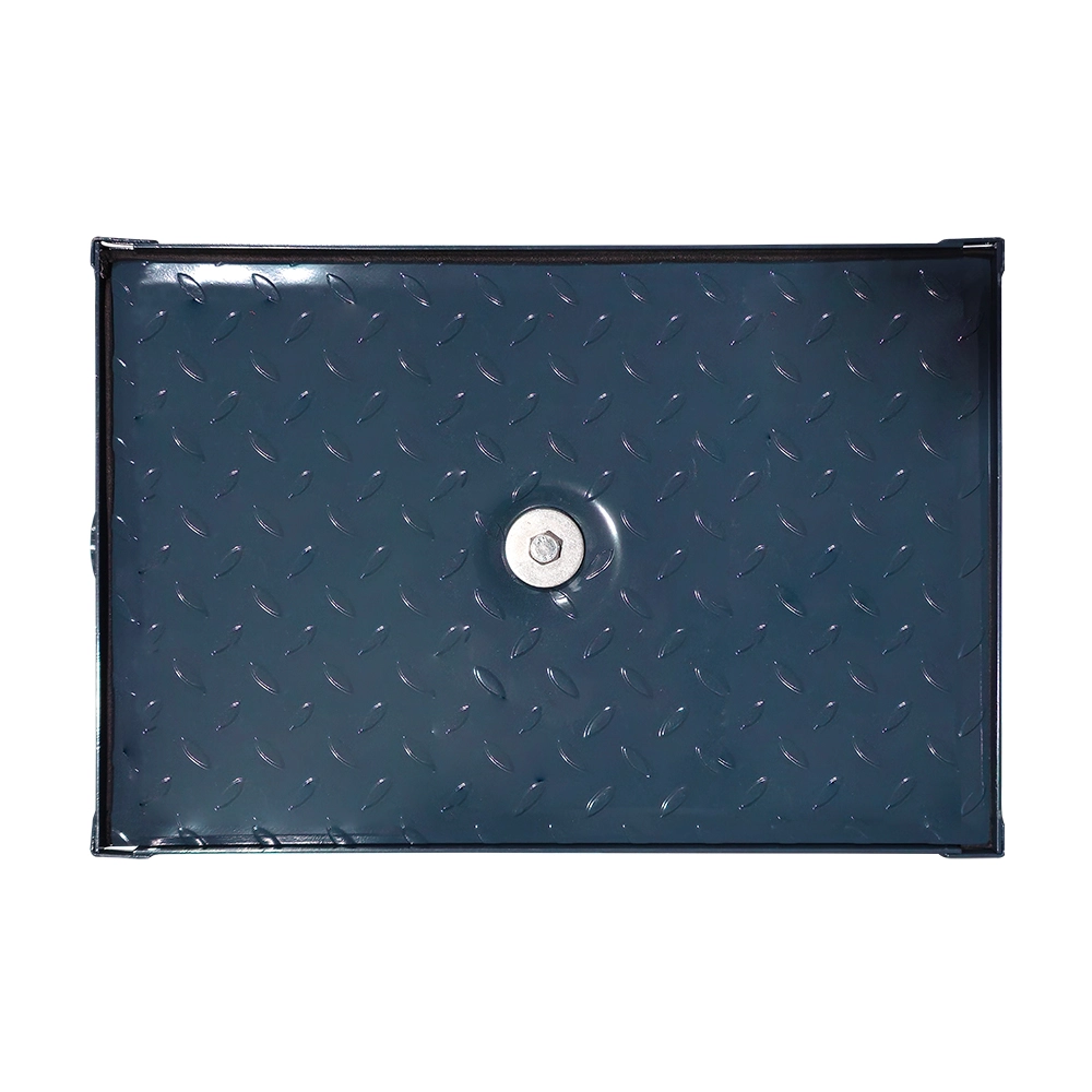Diamond plate cover with a center bolt ensures a tight seal. Keeps unpleasant odors contained and maintains a clean, professional environment.
