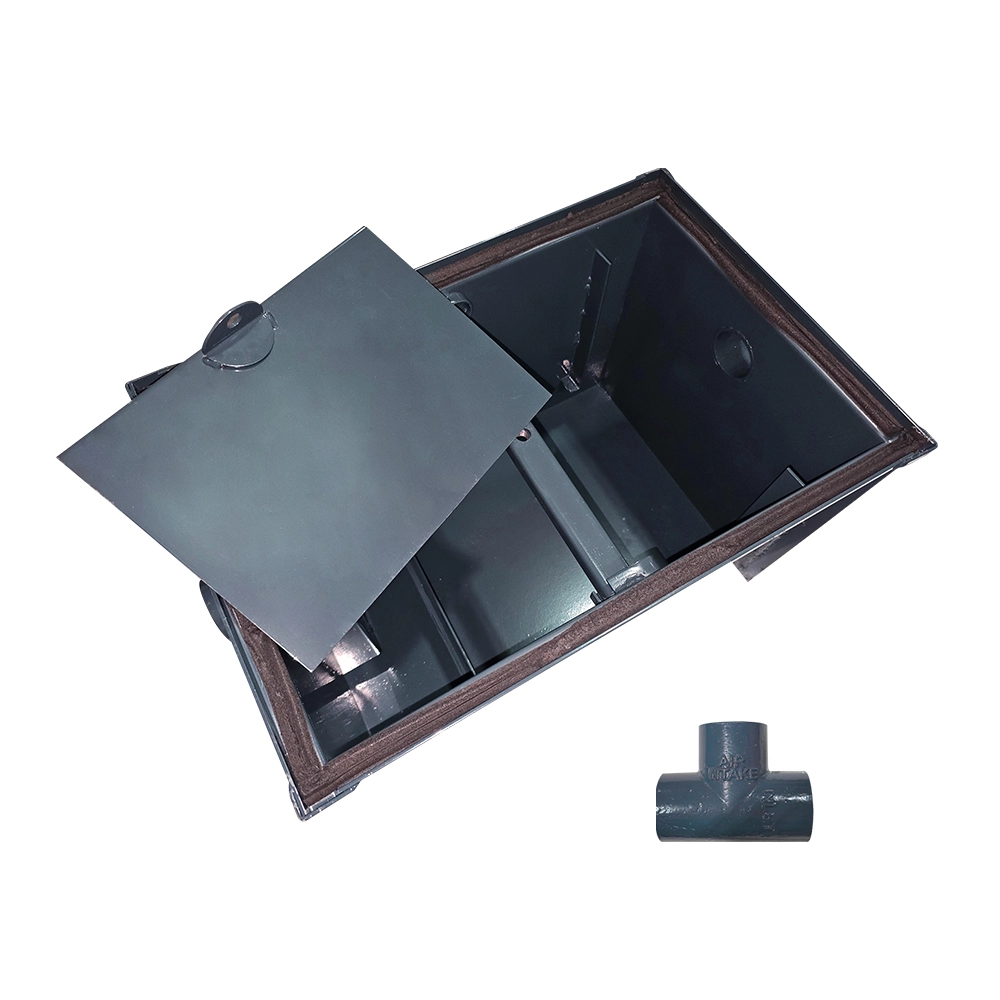 Internal baffles and flow control design maximize grease capture while maintaining steady flow. Easy to service and keeps plumbing clear of clogs.