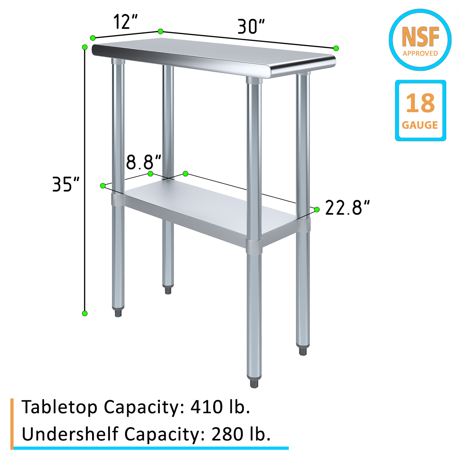 The spacious 30″ x 12″ tabletop provides ample workspace for a variety of tasks, including food preparation, equipment handling, and general workspace organization. Its smooth, polished surface is easy to clean and maintain, ensuring a hygienic environment that meets the high standards of any commercial setting.