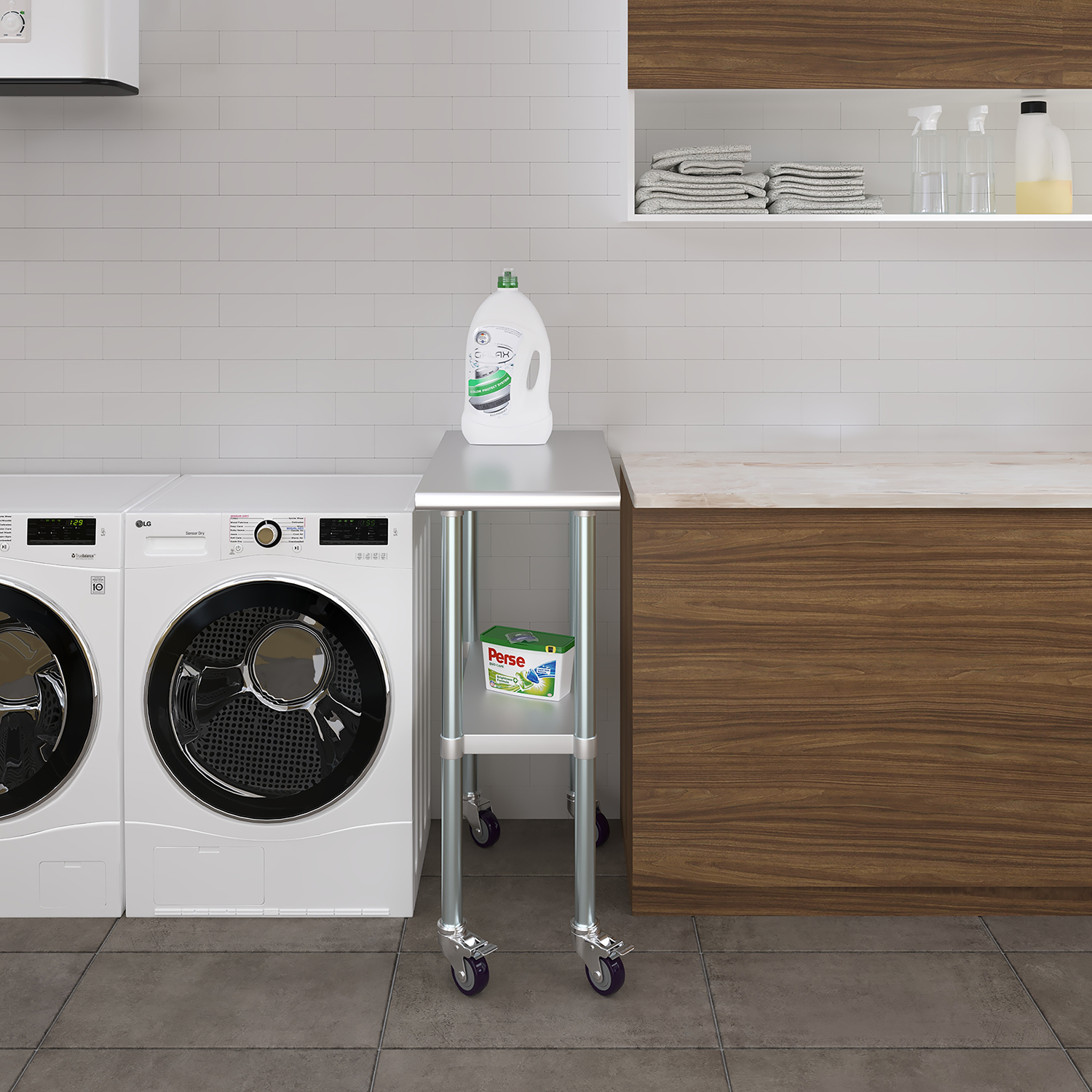 The compact dimensions of 30 inches by 15 inches make this work table an excellent choice for smaller spaces while still providing a robust and functional workspace. Despite its compact footprint, the table offers ample space for a variety of tasks, from food preparation and assembly work to scientific experiments and crafting projects.