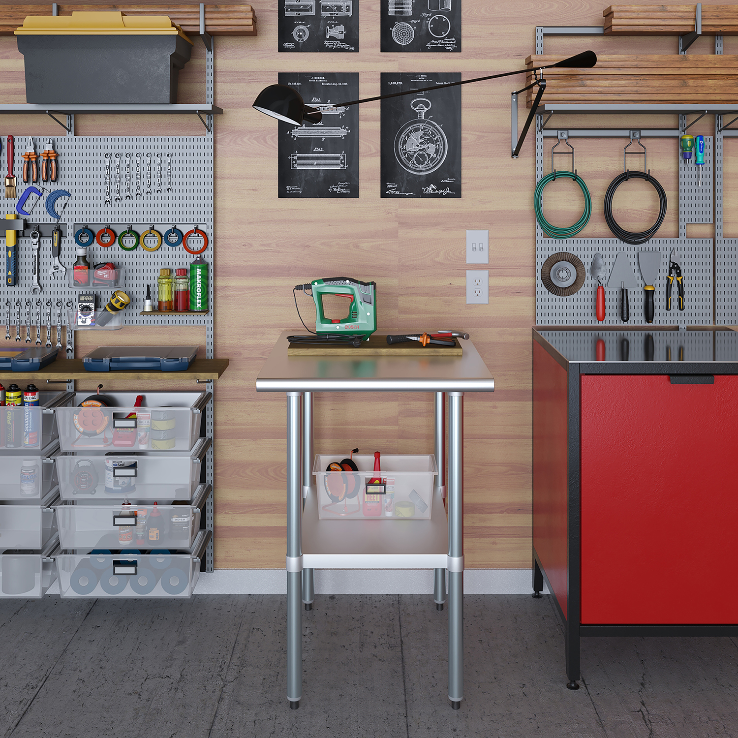 A key feature of this work table is the adjustable undershelf, which offers additional storage space for tools, supplies, and equipment. This undershelf can be positioned at your preferred height, allowing for customized storage solutions that meet your specific needs. Whether you need to store heavy equipment or small utensils, this versatile shelf enhances the functionality of your workspace by keeping essential items within easy reach.