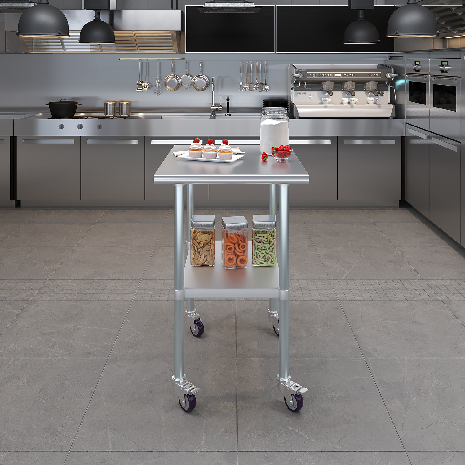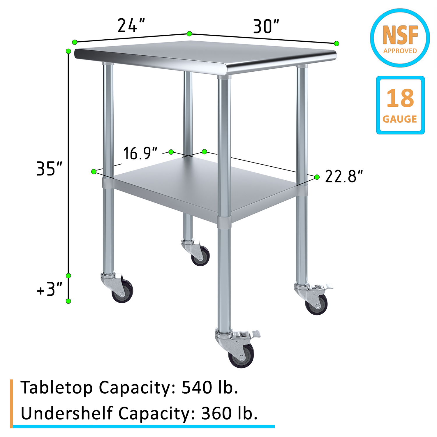 30″ X 24″ Stainless Steel Work Table With Undershelf & Wheels