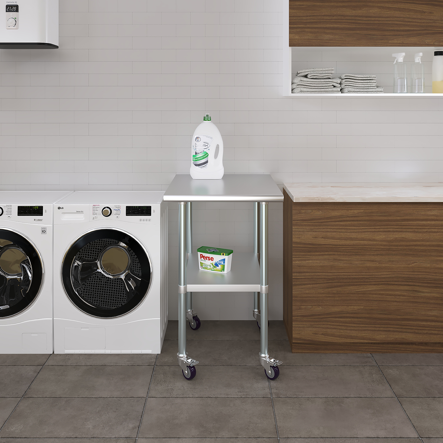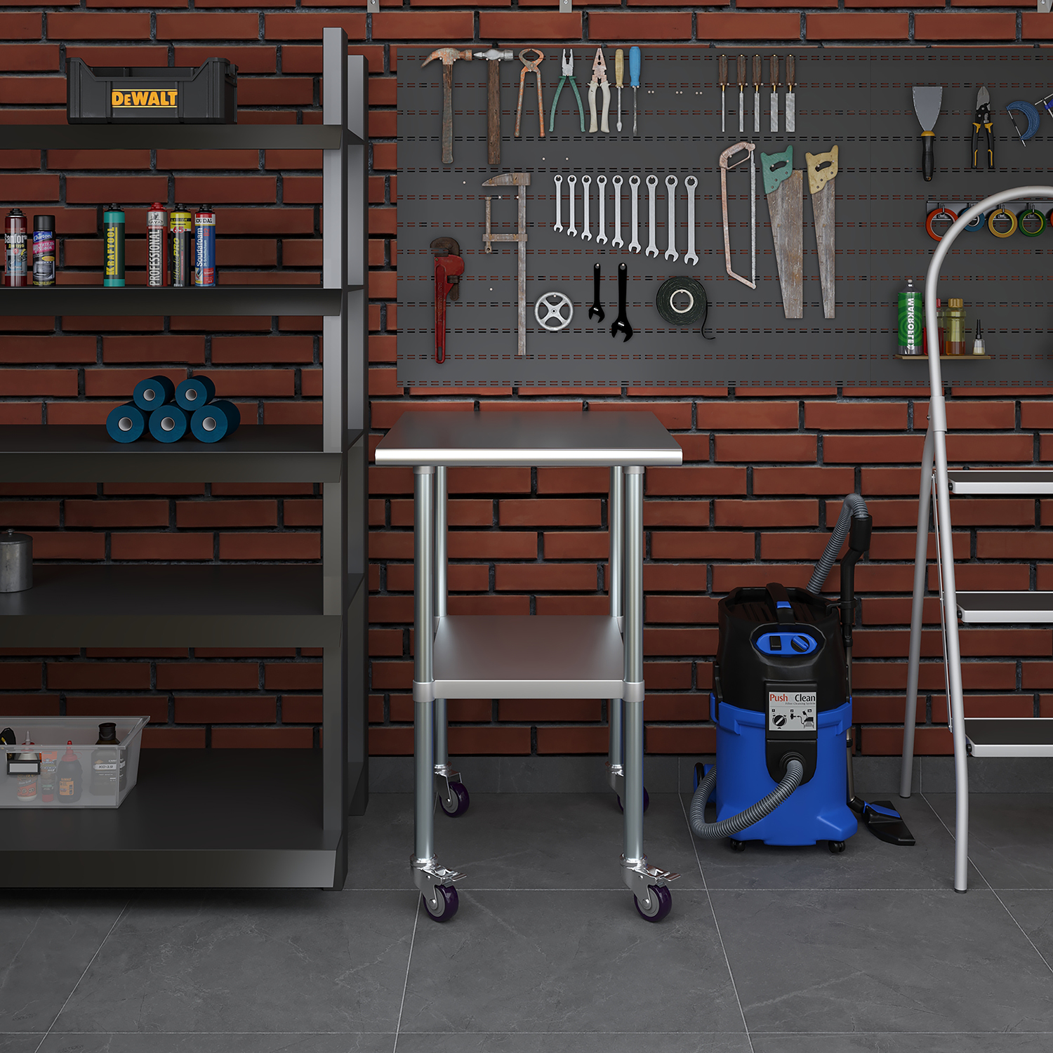The compact dimensions of 30 inches by 24 inches make this work table an excellent choice for smaller spaces while still providing a robust and functional workspace. Despite its compact footprint, the table offers ample space for a variety of tasks, from food preparation and assembly work to scientific experiments and crafting projects.