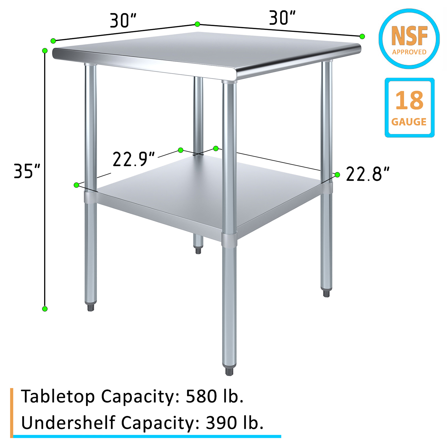 30″ X 30″ Stainless Steel Work Table With Undershelf