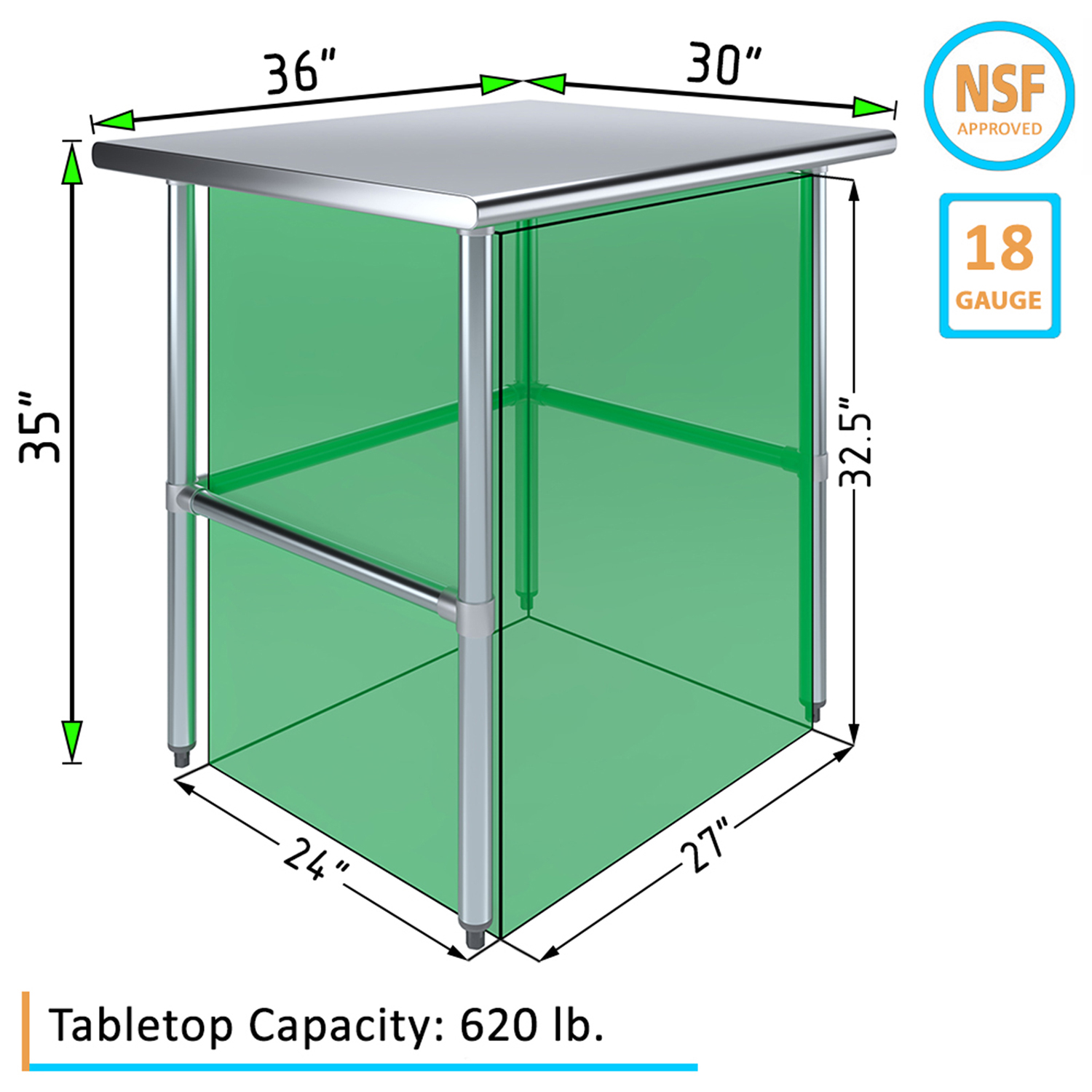 Measuring 30 inches by 36 inches, this work table offers a compact footprint that fits seamlessly into smaller spaces while still providing ample workspace for your projects. The clean, modern design complements any setting, adding a touch of professionalism to your environment. Whether you’re slicing ingredients in a busy kitchen, assembling components in a workshop, or conducting experiments in a lab, this stainless steel work table is a reliable and stylish addition to your workspace.