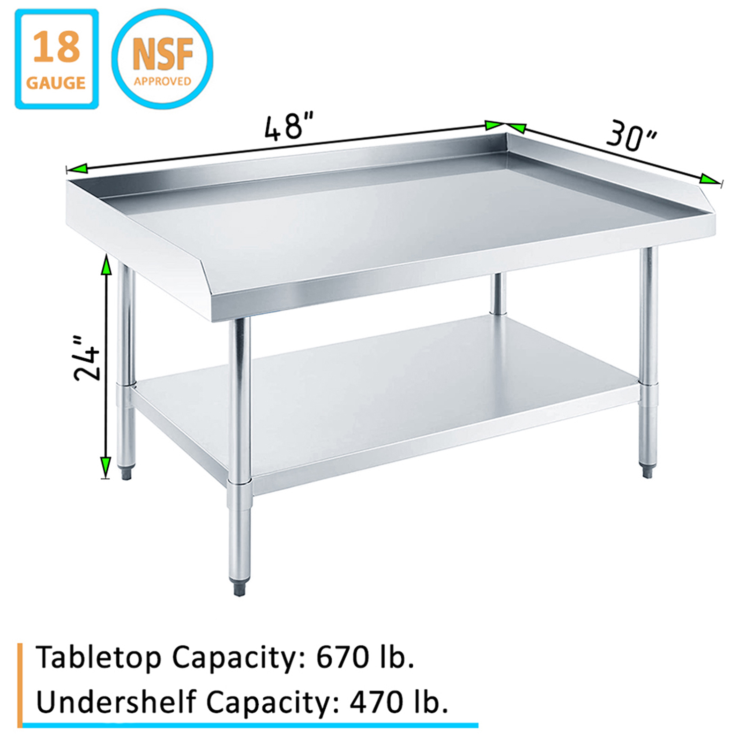 Maximize your kitchen efficiency and organization with our 30″ x 48″ Stainless Steel Equipment Stand. This robust stand is perfect for holding mixers, slicers, and other heavy-duty kitchen equipment, providing a stable and reliable workspace. The stainless steel construction not only ensures long-lasting durability but also offers a sleek, modern appearance that enhances any commercial kitchen setting.