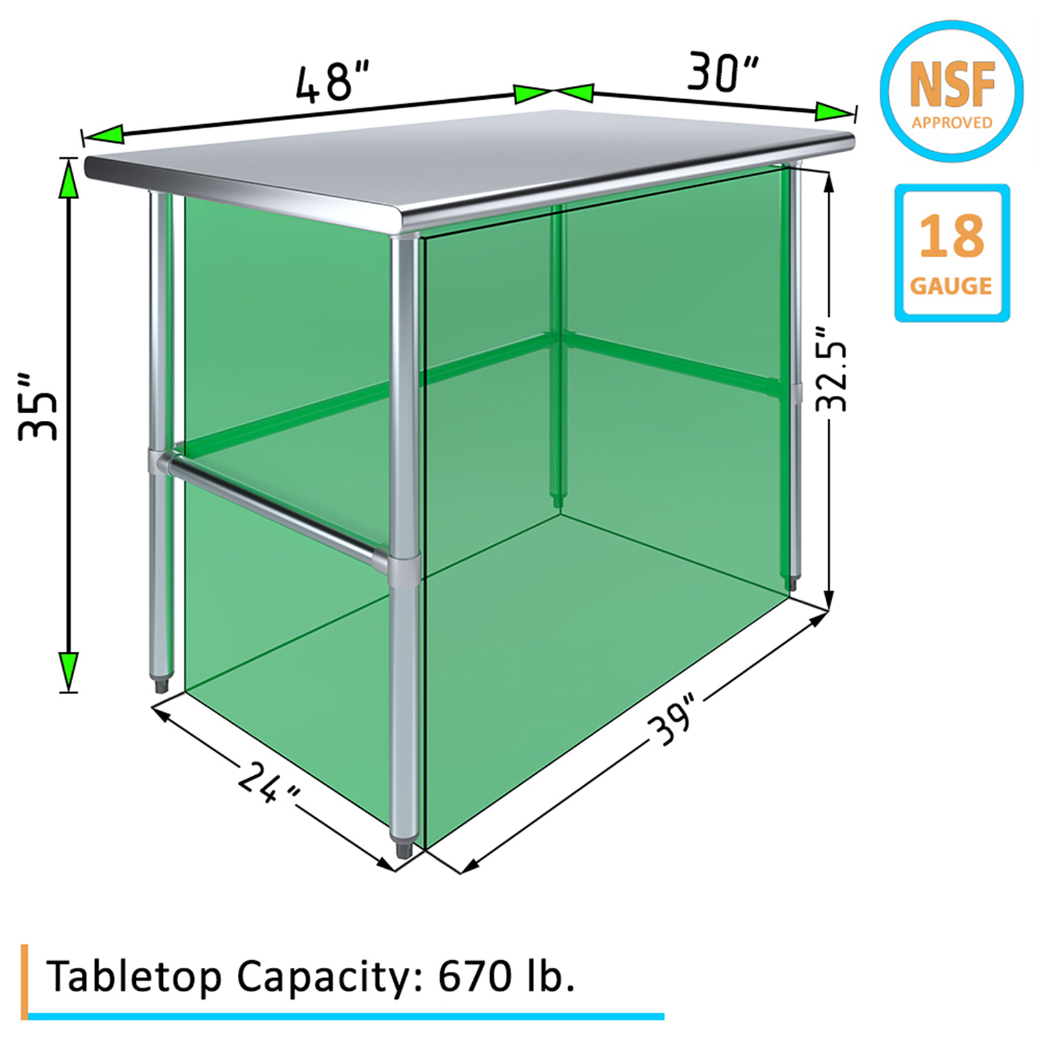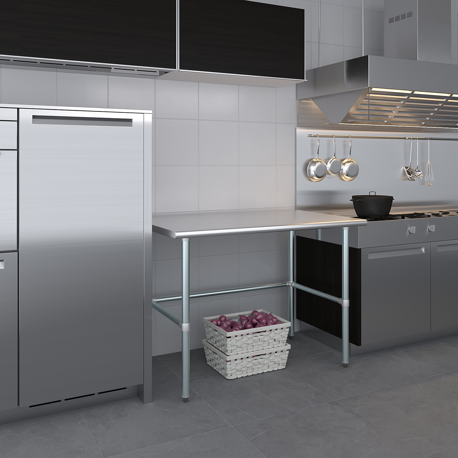 Enhance your workspace with the versatile and durable 30″ x 48″ Stainless Steel Work Table with Open Base. Crafted from 18GA/430 stainless steel, this work table is designed to withstand the rigors of daily use in commercial kitchens, workshops, laboratories, and other demanding environments. Its sleek, smooth surface is not only easy to clean but also resistant, ensuring long-lasting performance and hygiene.