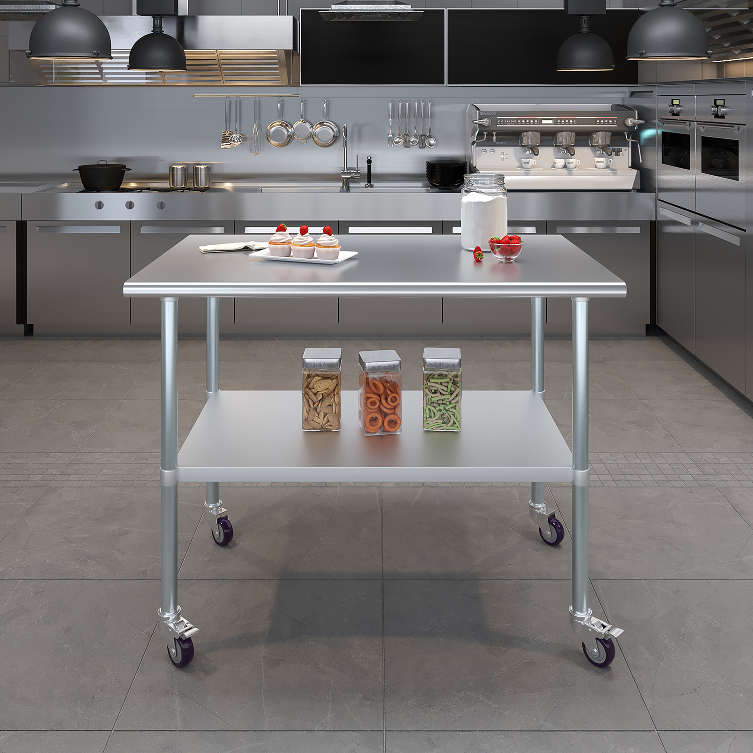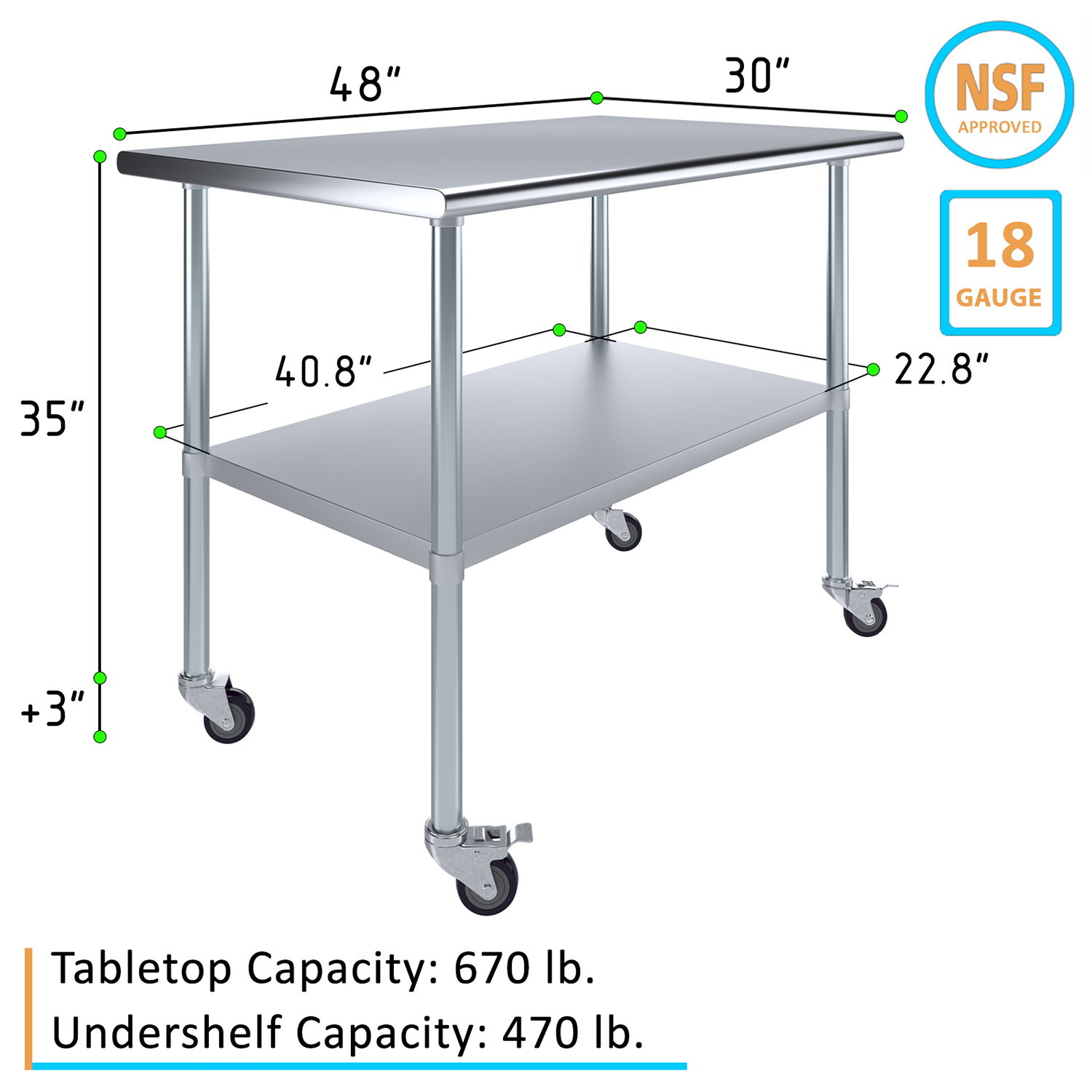 30″ X 48″ Stainless Steel Work Table With Undershelf & Wheels