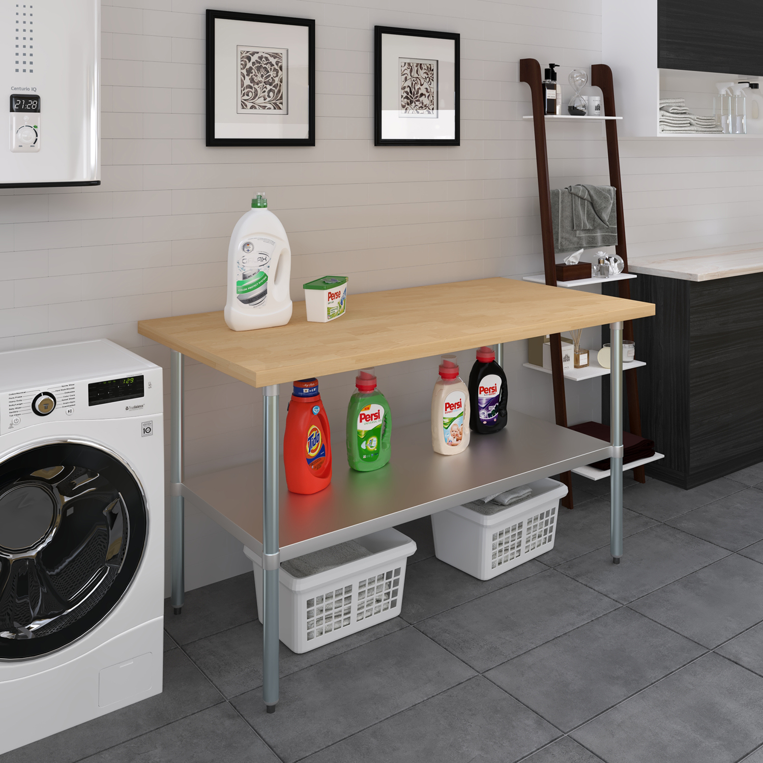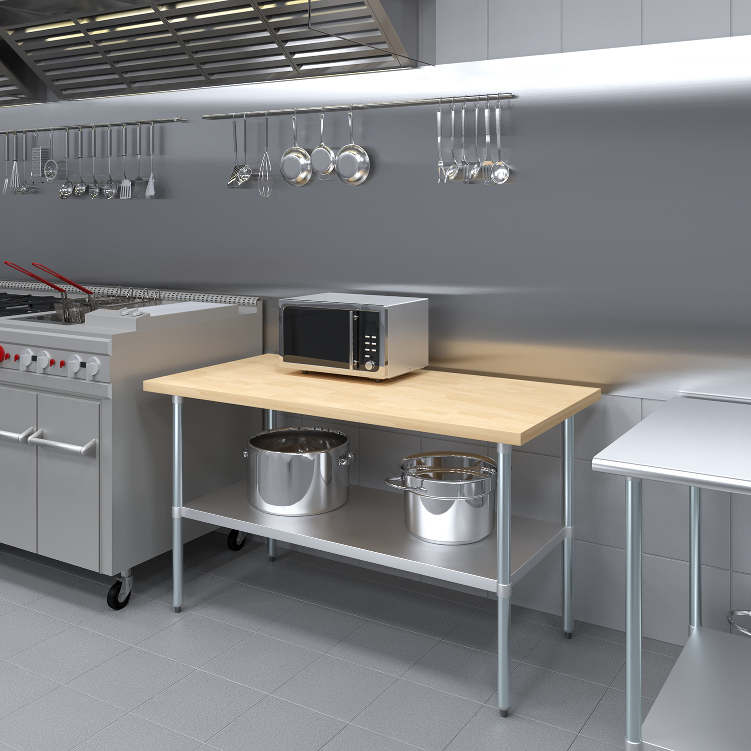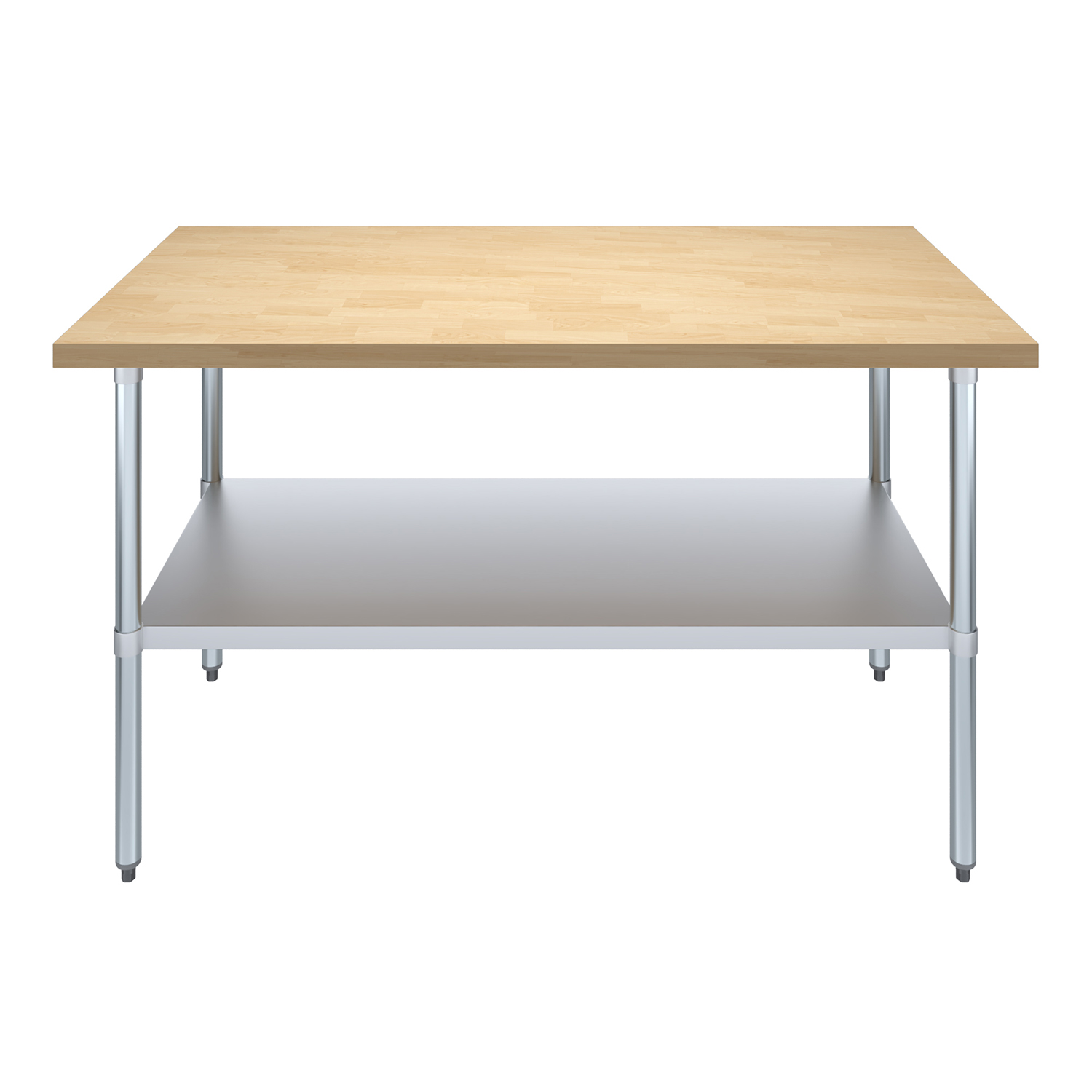 Introducing our 30″ x 60″ Maple Wood Top Work Table with Adjustable Undershelf, the perfect blend of functionality, durability, and style. Designed to meet the demands of busy kitchens, workshops, and commercial environments, this work table features a premium maple wood top that provides a smooth, sturdy surface ideal for a wide range of tasks, from food preparation to crafting and assembly work.