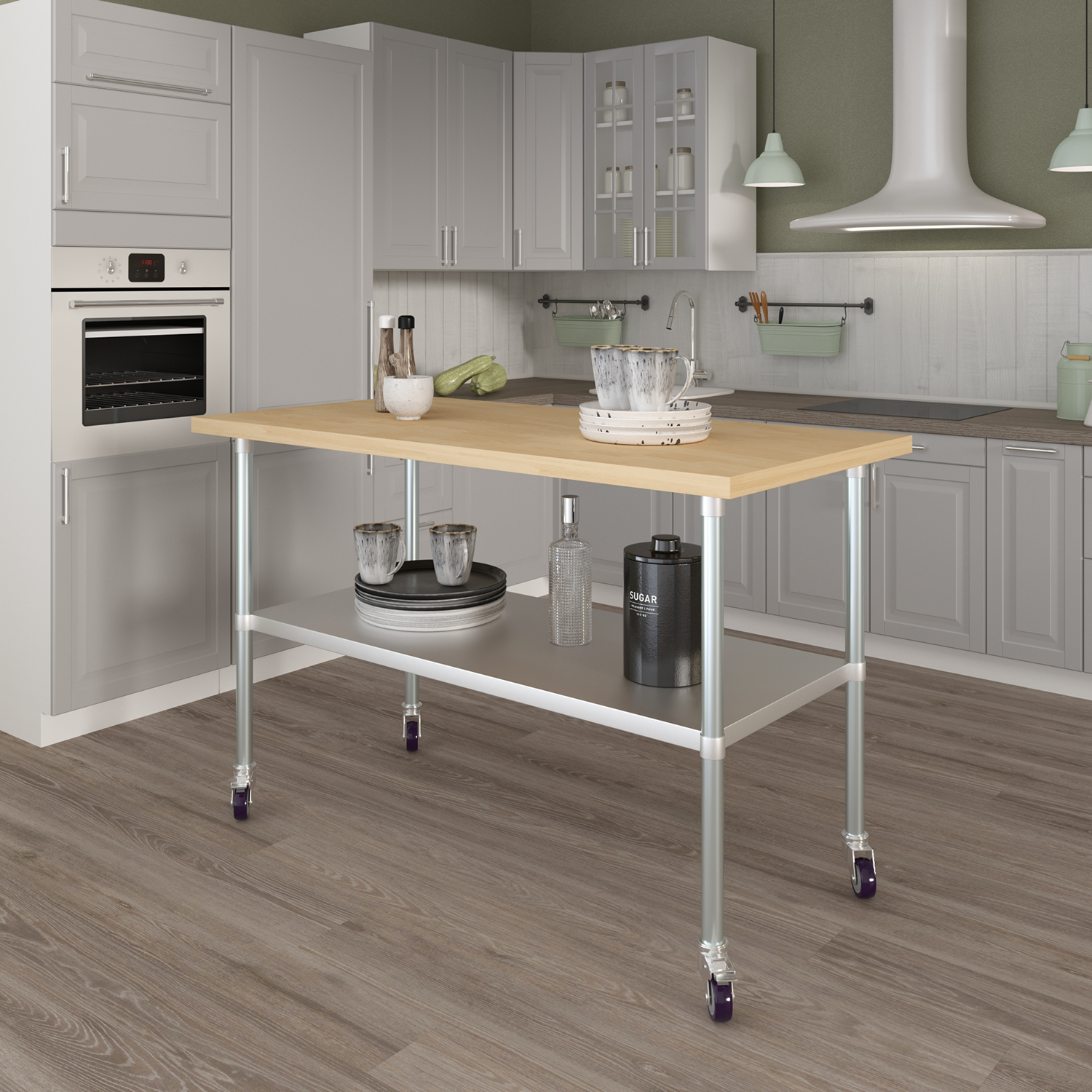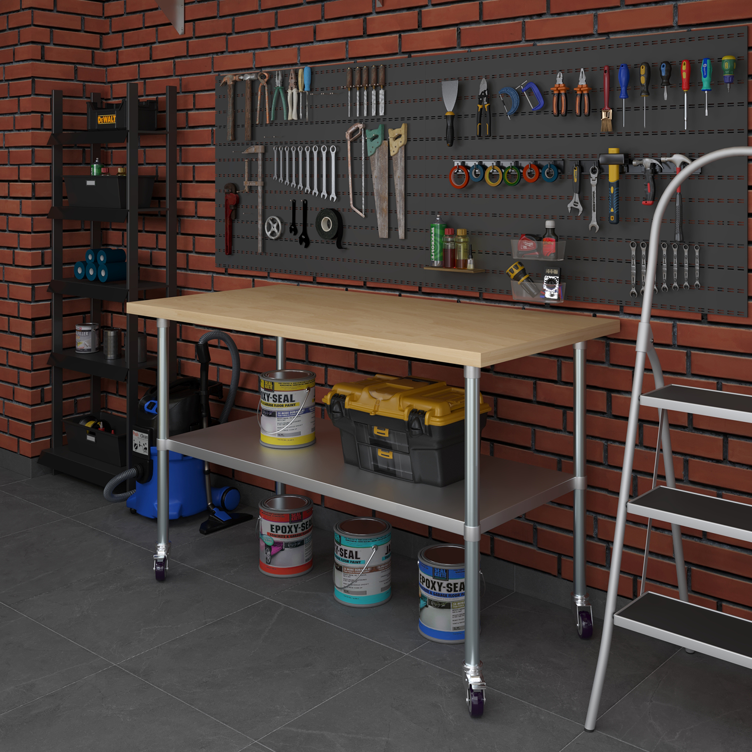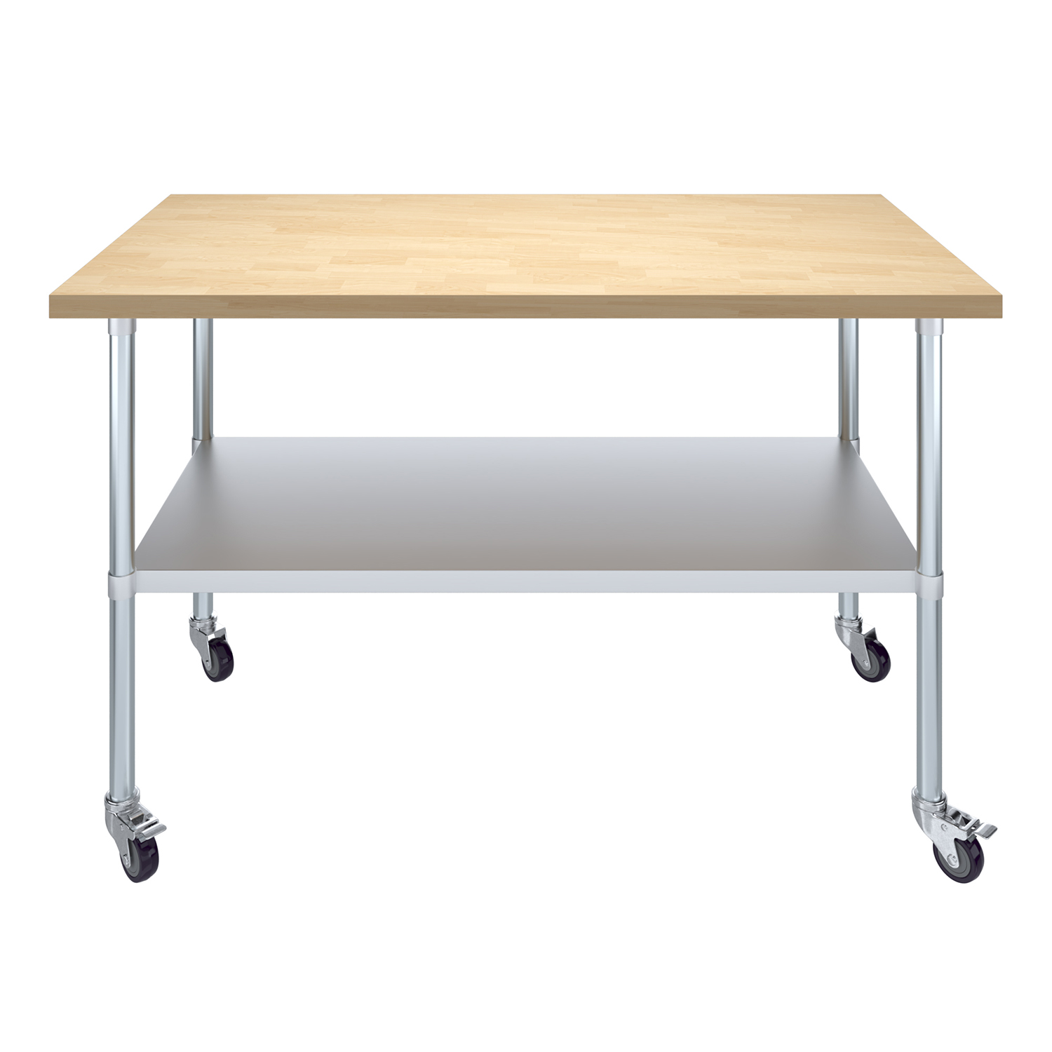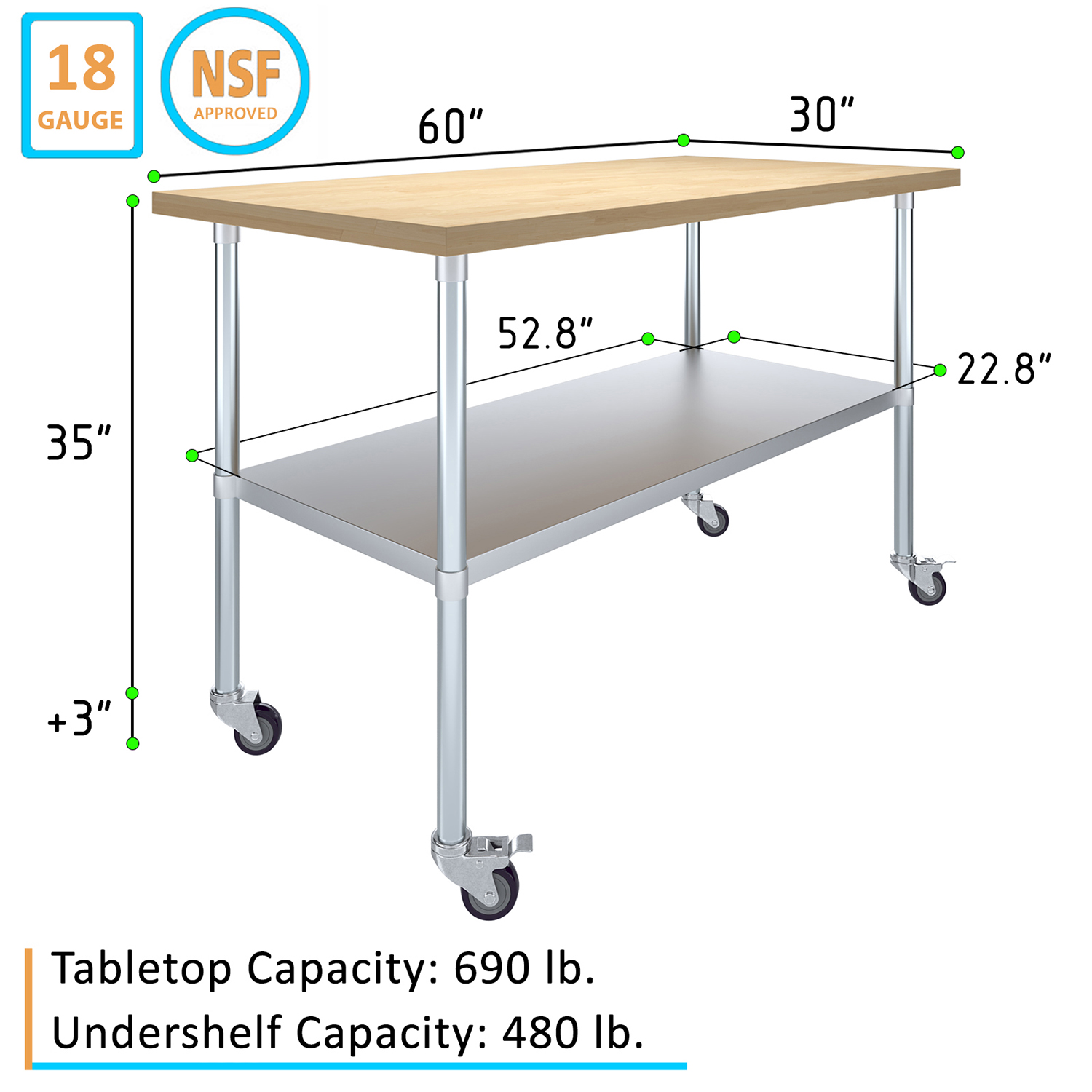 30″ X 60″ Maple Wood Top Work Table with Adjustable Undershelf with Wheels