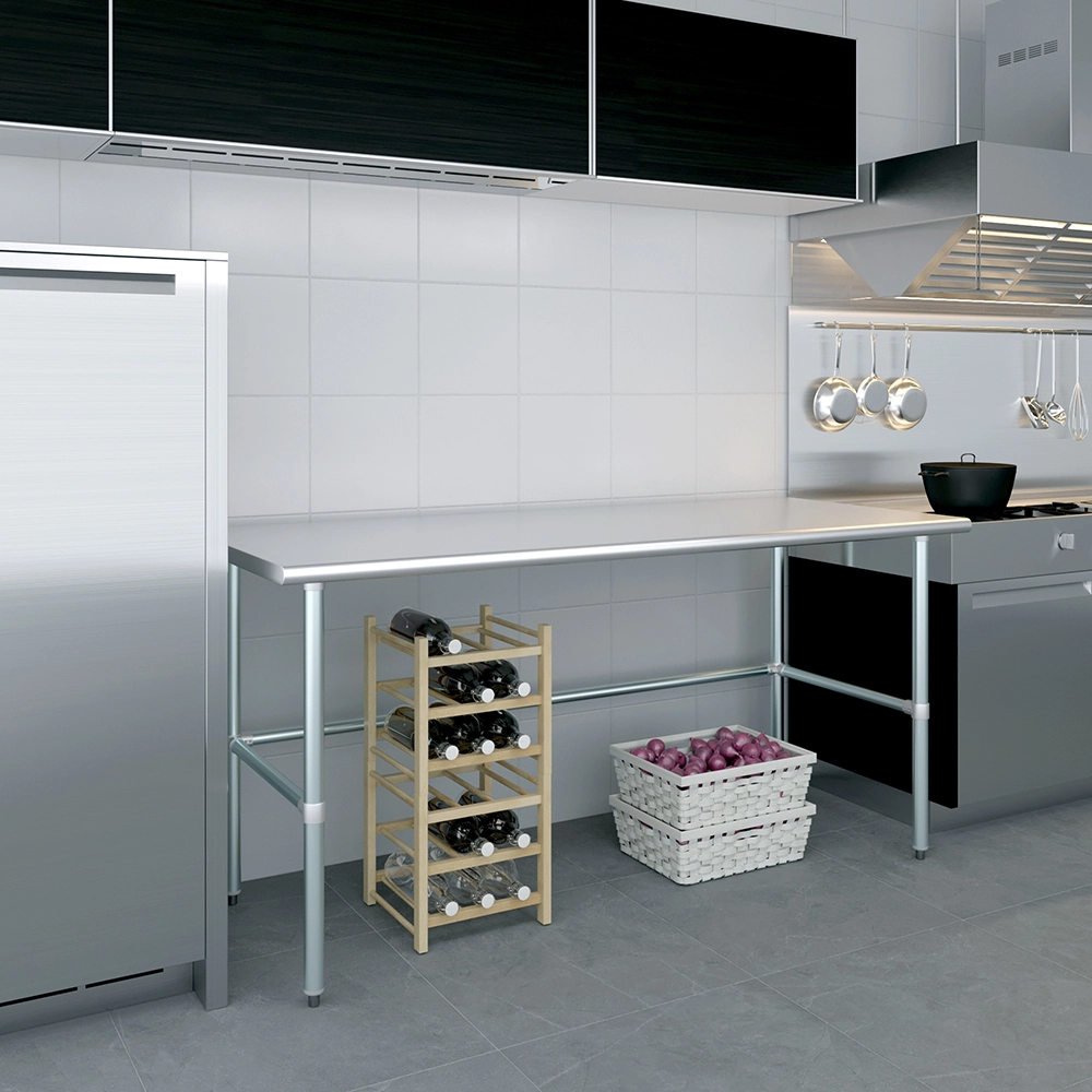 Enhance your workspace with the versatile and durable 30″ x 72″ Stainless Steel Work Table with Open Base. Crafted from 18GA/430 stainless steel, this work table is designed to withstand the rigors of daily use in commercial kitchens, workshops, laboratories, and other demanding environments. Its sleek, smooth surface is not only easy to clean but also resistant, ensuring long-lasting performance and hygiene.