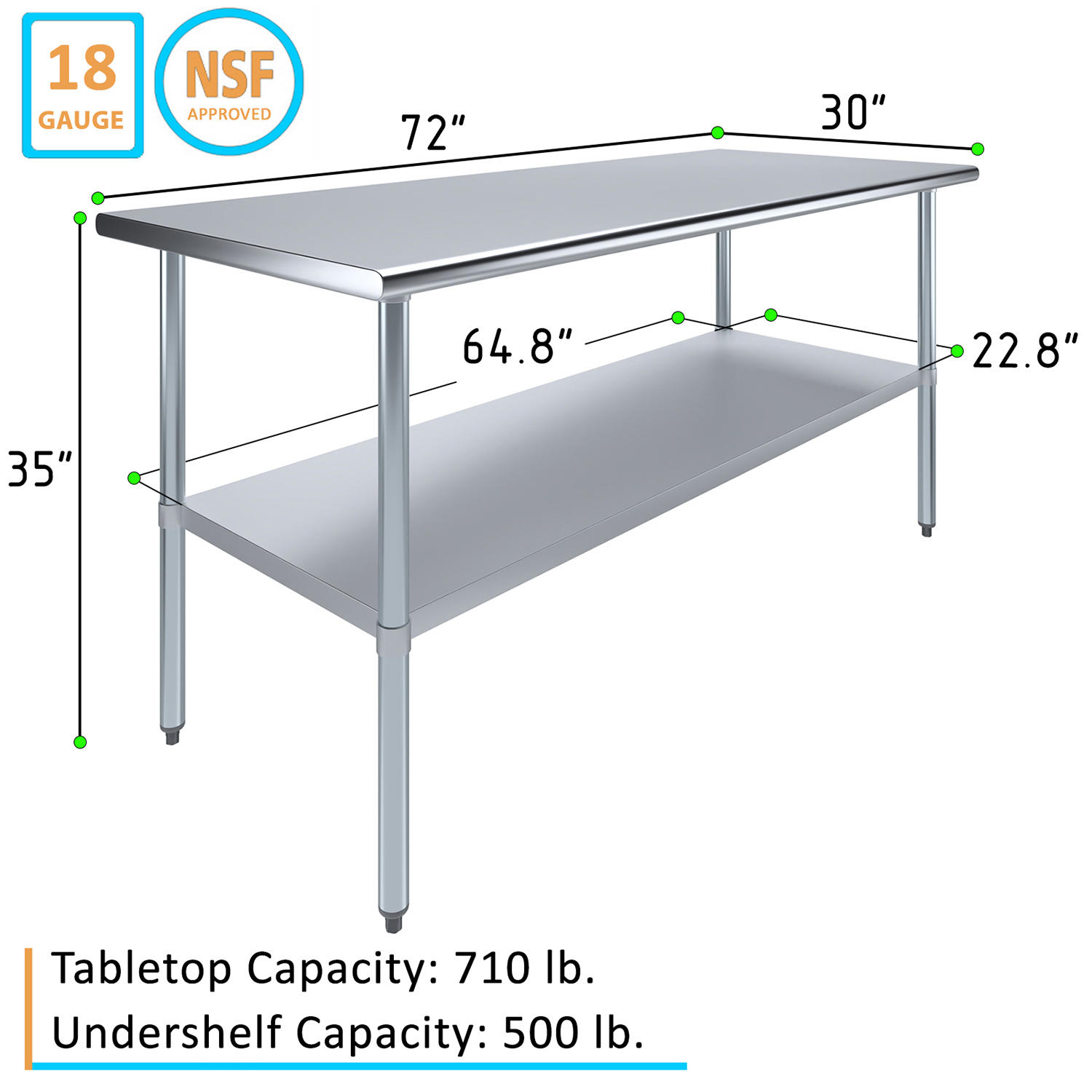30″ X 72″ Stainless Steel Work Table With Undershelf