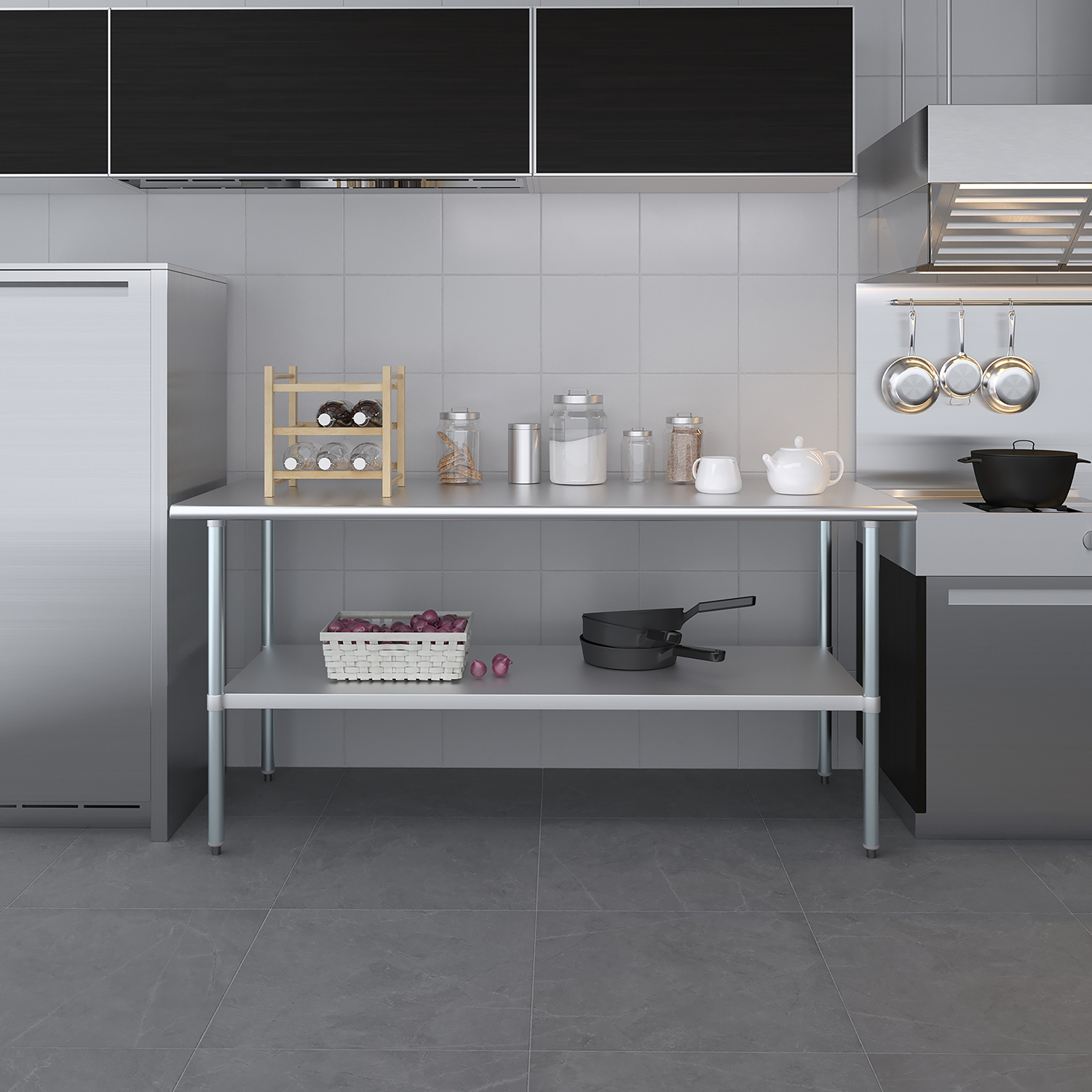Ideal for a wide range of applications, from commercial kitchens and catering services to laboratories and workshops, the 30″ X 72″ Stainless Steel Work Table with Undershelf is a practical and stylish addition that enhances productivity and organization. Its sleek, professional appearance complements any setting, while its durable construction guarantees long-lasting performance.