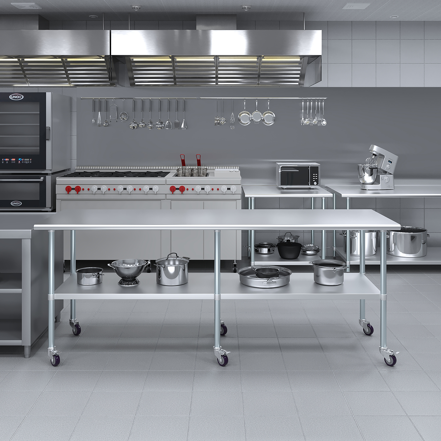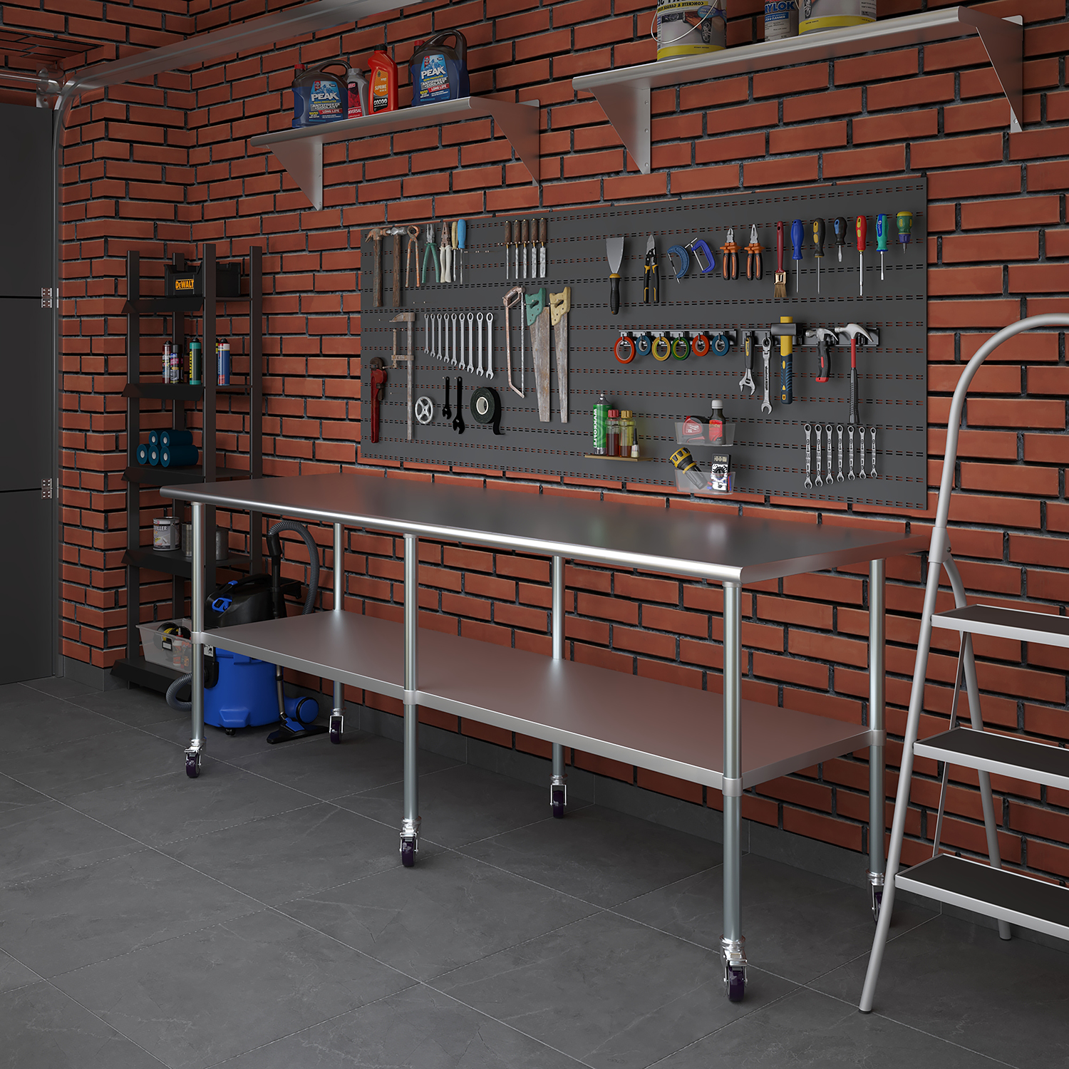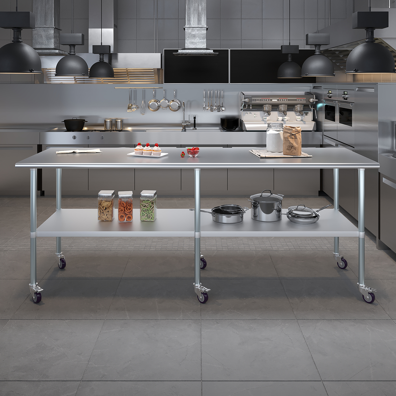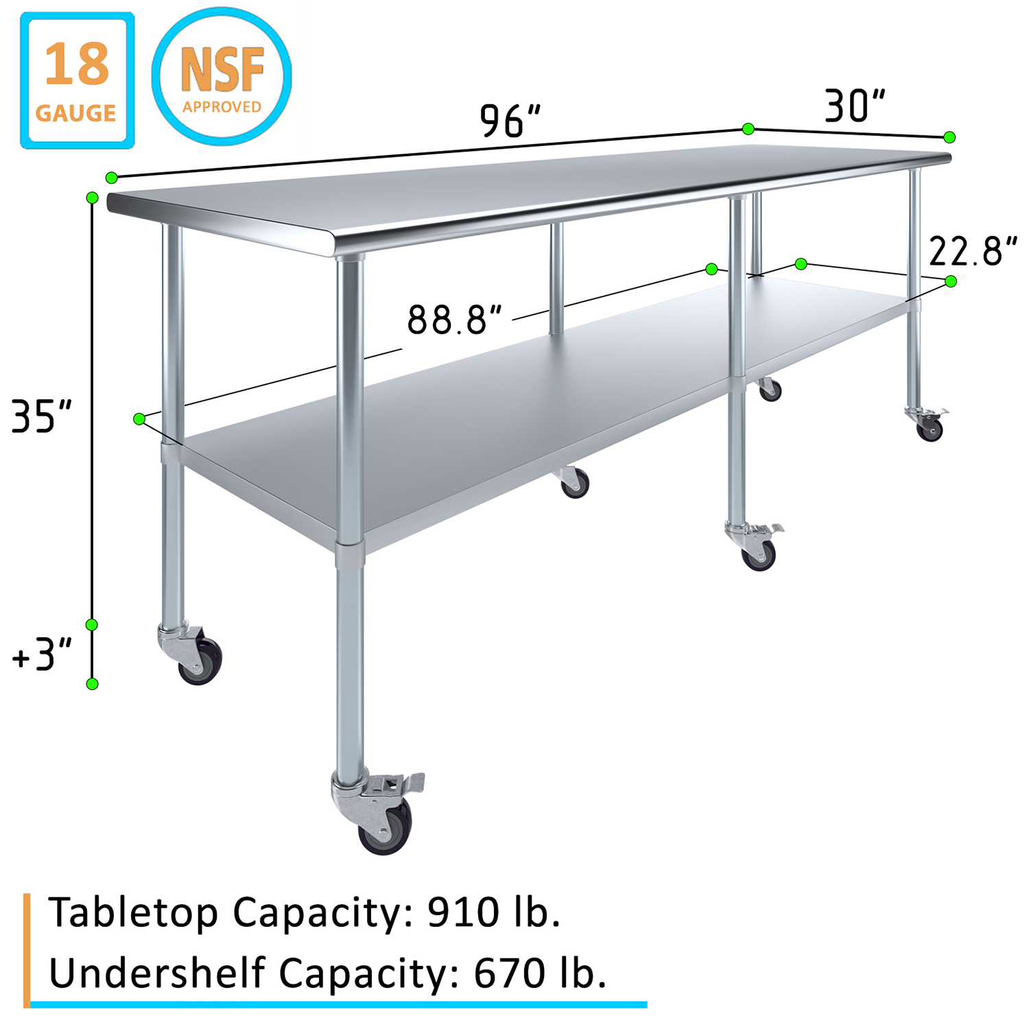 30″ X 96″ Stainless Steel Work Table With Undershelf & Wheels