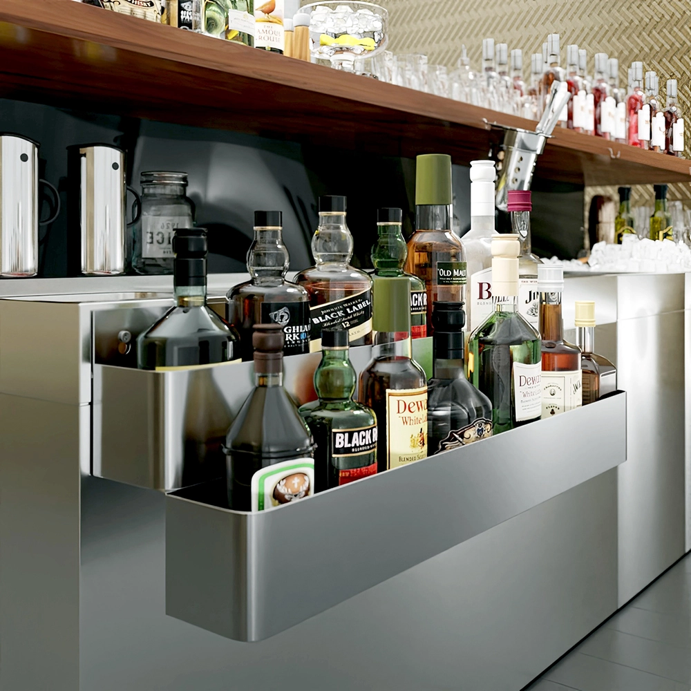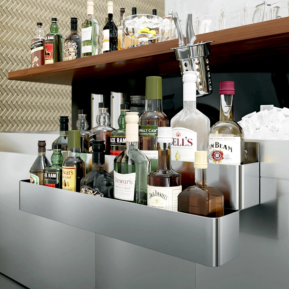 The innovative double-tier design provides ample storage space, allowing you to keep a wide array of bottles readily accessible. The 32-inch length accommodates multiple bottles on each tier, ensuring that your most frequently used spirits, mixers, oils, or sauces are within easy reach. This design not only optimizes your workspace but also helps maintain a neat and organized setup, crucial for fast-paced service areas.