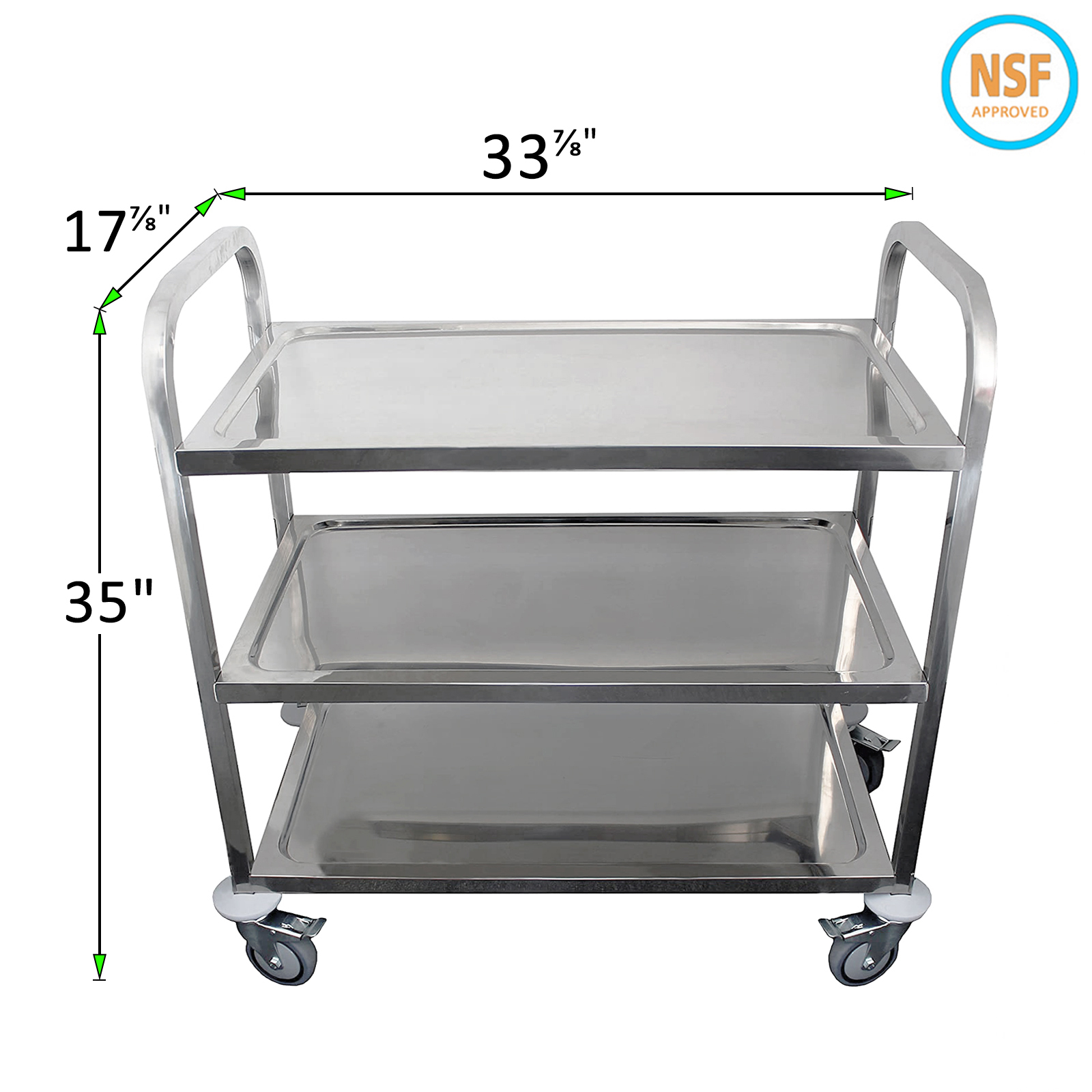 34 in. Legth X 18 in. Width Stainless Steel Dining Cart 3 Shelf With Wheels – Heavy Duty