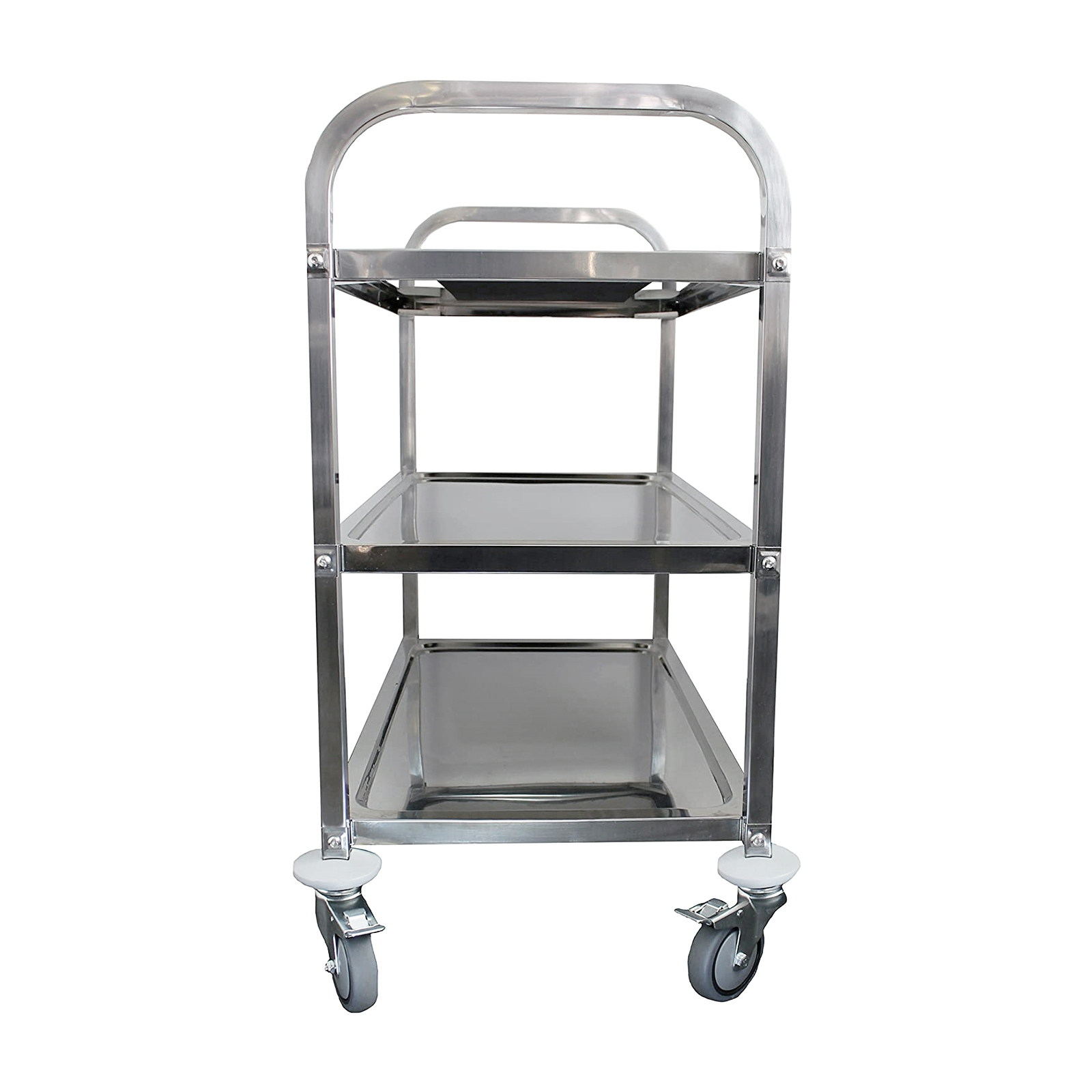 The cart is equipped with smooth-rolling wheels that facilitate effortless movement across different floor surfaces. Whether you’re navigating through tight kitchen spaces or moving supplies across a dining area, this cart provides the mobility you need. Additionally, the wheels include locking casters to ensure the cart remains stable and secure when stationary, preventing unwanted movement and ensuring safety.