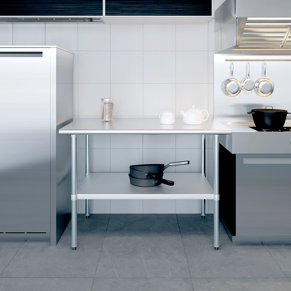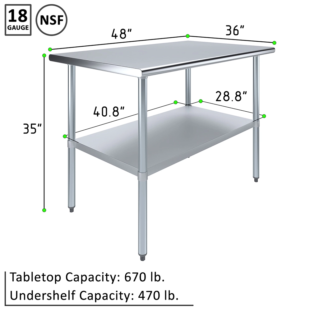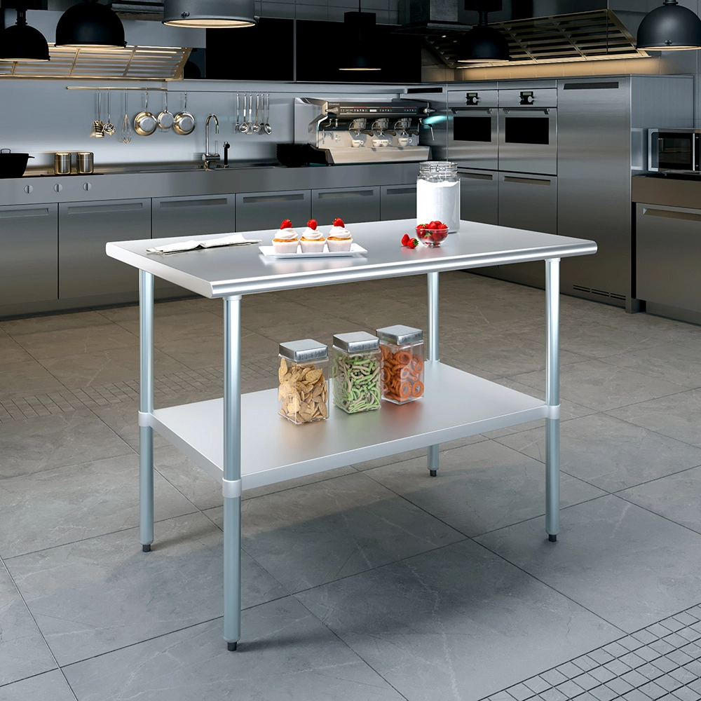 Ideal for a wide range of applications, from commercial kitchens and catering services to laboratories and workshops, the 36 in. x 48 in. Stainless Steel Work Table with Undershelf is a practical and stylish addition that enhances productivity and organization. Its sleek, professional appearance complements any setting, while its durable construction guarantees long-lasting performance.