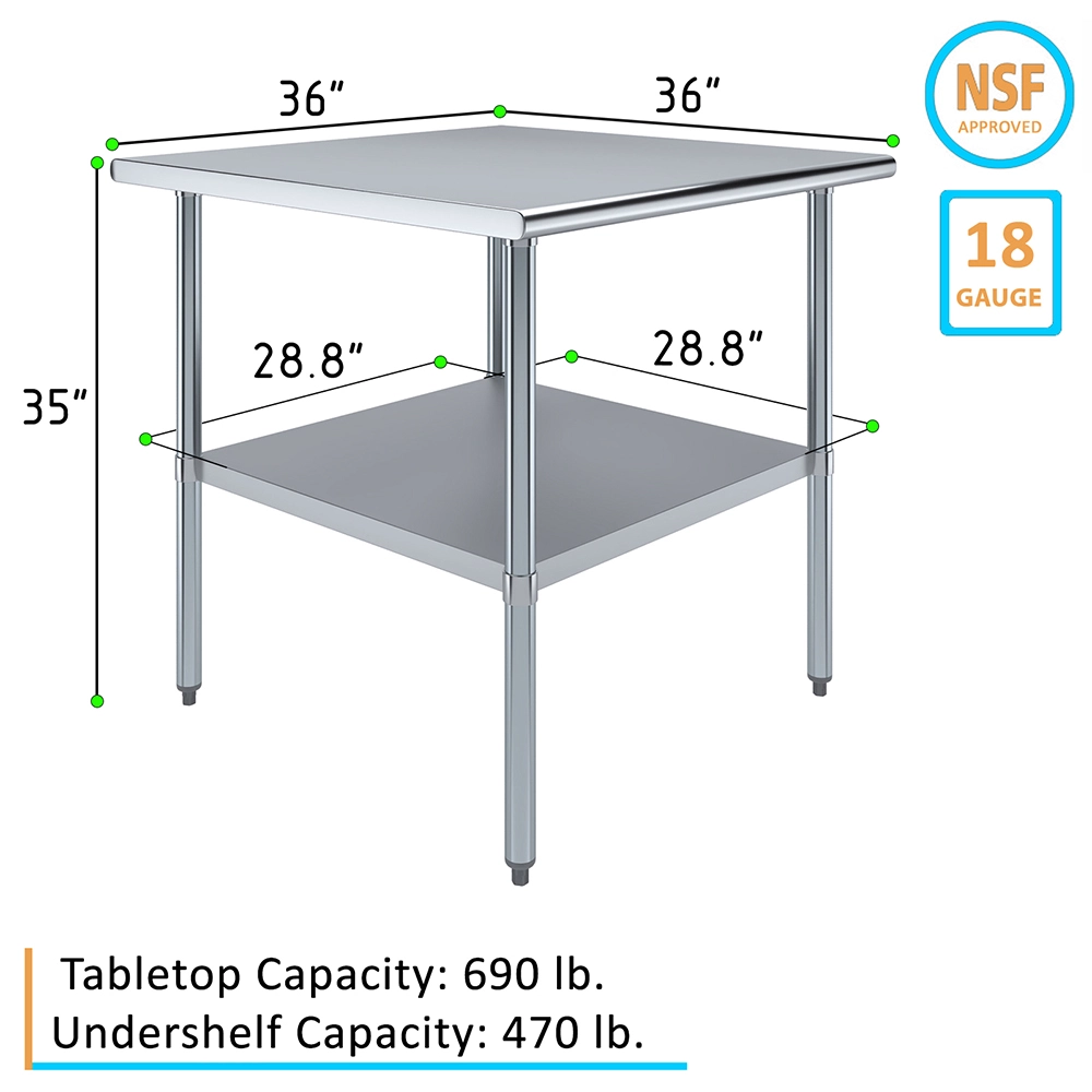 Ideal for a wide range of applications, from commercial kitchens and catering services to laboratories and workshops, the 36″ X 36″ Stainless Steel Work Table with Undershelf is a practical and stylish addition that enhances productivity and organization. Its sleek, professional appearance complements any setting, while its durable construction guarantees long-lasting performance.