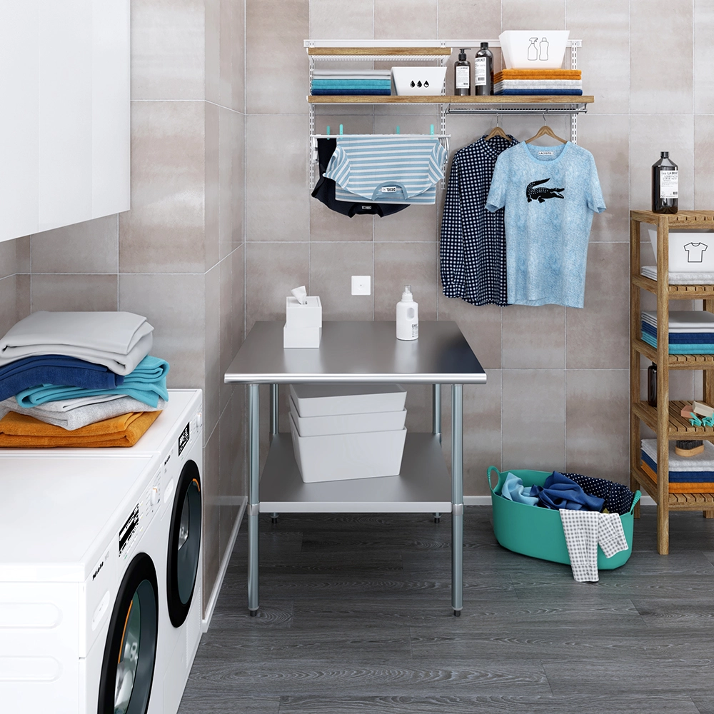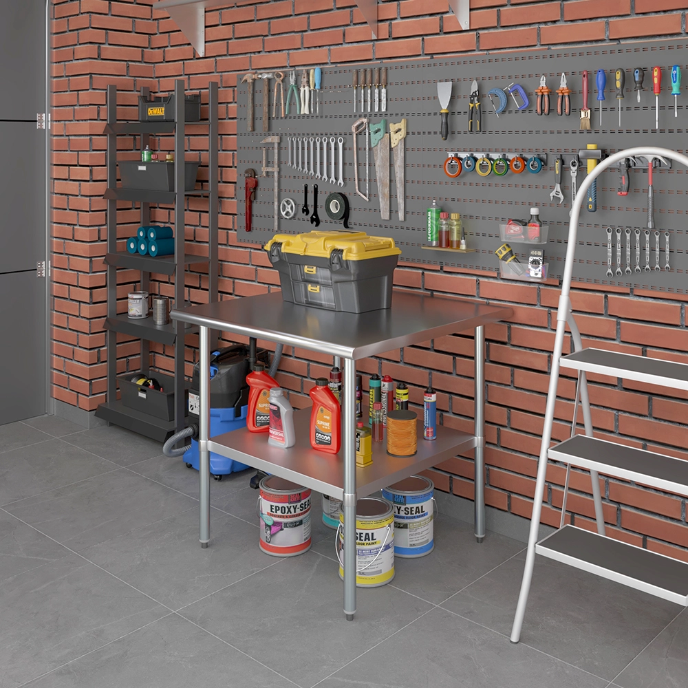 A key feature of this work table is the adjustable undershelf, which offers additional storage space for tools, supplies, and equipment. This undershelf can be positioned at your preferred height, allowing for customized storage solutions that meet your specific needs. Whether you need to store heavy equipment or small utensils, this versatile shelf enhances the functionality of your workspace by keeping essential items within easy reach.
