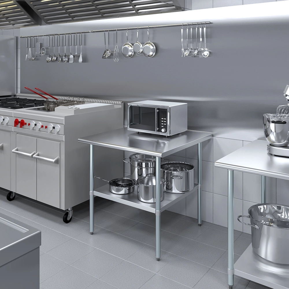 Introducing the 36″ X 36″ Stainless Steel Work Table with Undershelf – a robust and versatile solution for enhancing efficiency and organization in any commercial kitchen, workshop, or utility space. Meticulously crafted from 18GA/430 stainless steel, this work table ensures exceptional durability, resistance and easy maintenance, making it a reliable addition to any professional environment.