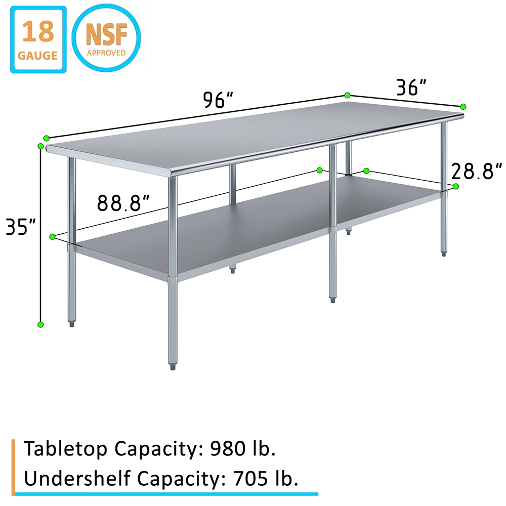 36″ X 96″ Stainless Steel Work Table With Undershelf