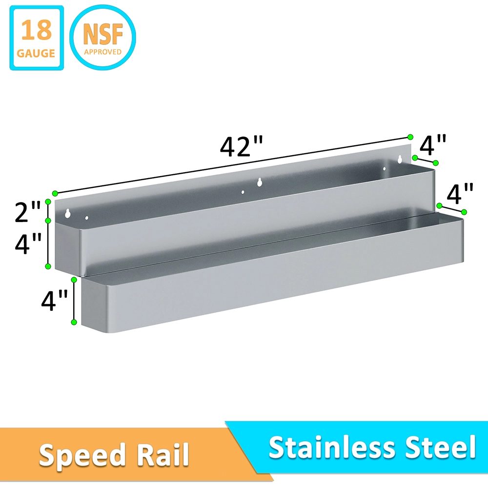 Introducing our 42″ Double Tier Stainless Steel Speed Rail Rack, a must-have for any bar or commercial kitchen aiming to maximize efficiency, organization, and speed of service. Expertly crafted from 18GA/430 stainless steel, this speed rail rack boasts exceptional durability and resistance, making it an ideal addition to high-traffic environments.