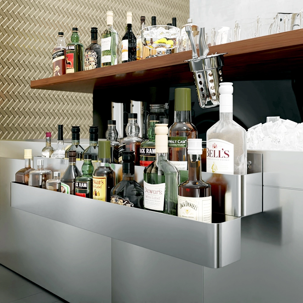 The innovative double-tier design provides ample storage space, allowing you to keep a wide array of bottles readily accessible. The 42-inch length accommodates multiple bottles on each tier, ensuring that your most frequently used spirits, mixers, oils, or sauces are within easy reach. This design not only optimizes your workspace but also helps maintain a neat and organized setup, crucial for fast-paced service areas.