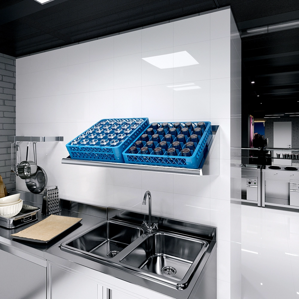 Wall-mounted for convenience, this shelf saves valuable floor and countertop space, making it an excellent choice for kitchens or workspaces with limited room. The sturdy construction ensures it can securely hold multiple items, offering a practical and reliable storage solution. The smooth stainless steel surface is easy to clean, ensuring hygiene and a polished appearance.