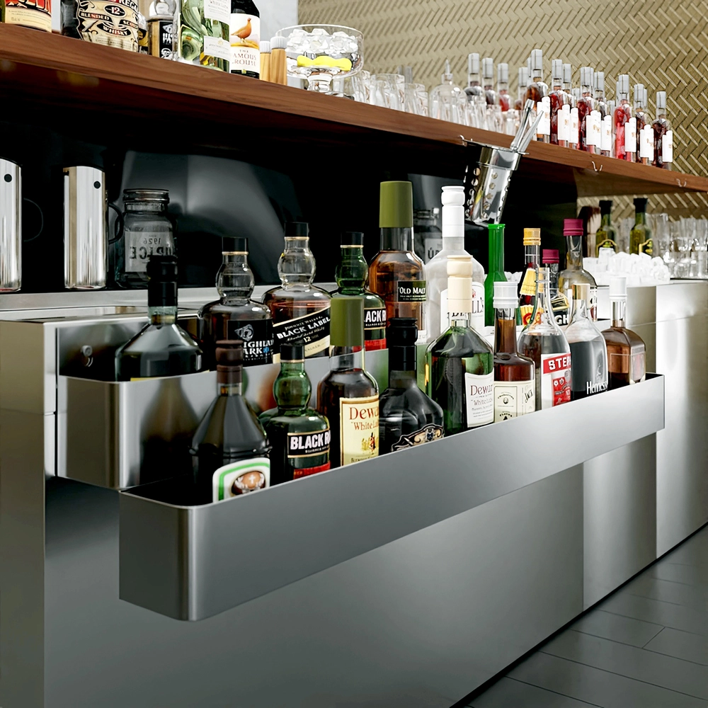 The innovative double-tier design provides ample storage space, allowing you to keep a wide array of bottles readily accessible. The 48-inch length accommodates multiple bottles on each tier, ensuring that your most frequently used spirits, mixers, oils, or sauces are within easy reach. This design not only optimizes your workspace but also helps maintain a neat and organized setup, crucial for fast-paced service areas.