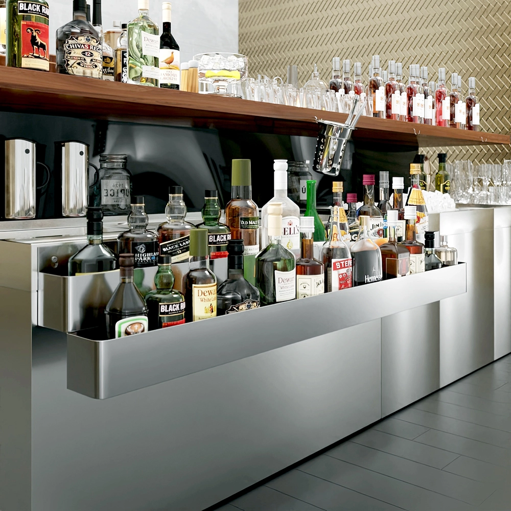 The innovative double-tier design provides ample storage space, allowing you to keep a wide array of bottles readily accessible. The 60-inch length accommodates multiple bottles on each tier, ensuring that your most frequently used spirits, mixers, oils, or sauces are within easy reach. This design not only optimizes your workspace but also helps maintain a neat and organized setup, crucial for fast-paced service areas.