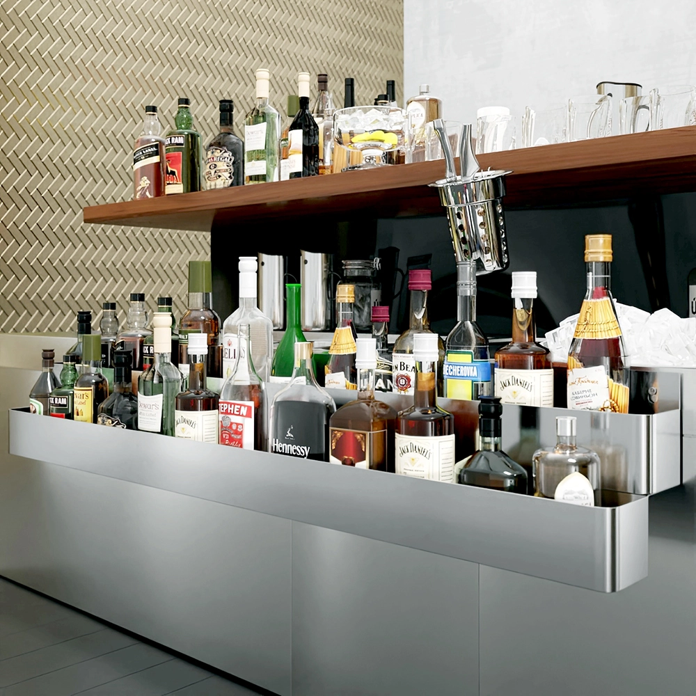 Ideal for a variety of settings, from bustling bars and nightclubs to busy restaurant kitchens, this double-tier speed rail rack is designed to withstand the rigors of daily use while maintaining its integrity and appearance. The enhanced storage capacity allows bartenders and chefs to work more effectively, reducing the time spent searching for ingredients and enabling faster service.