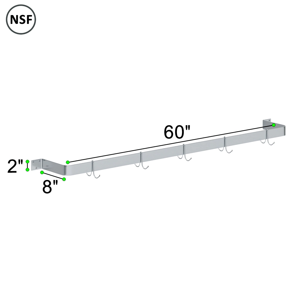 Maximize your kitchen space with the 60 in. Wall-Mounted Stainless Steel Single-Line Pot Rack, designed to provide an efficient and durable solution for organizing cookware. Crafted from 18GA/430 stainless steel, this pot rack is built to resist corrosion, rust, and stains, ensuring long-lasting performance in both home and commercial kitchens.