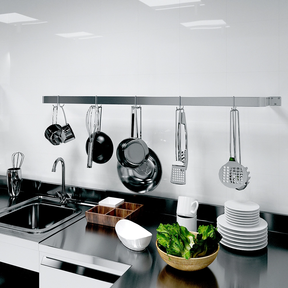 The sleek single-line design offers ample hanging space for pots, pans, and utensils, allowing you to free up valuable cabinet and counter space. By keeping your cookware and tools easily accessible, this pot rack helps streamline your workflow and maintain a clean, organized kitchen environment. Its minimalist style not only enhances functionality but also adds a professional, modern aesthetic to your space.