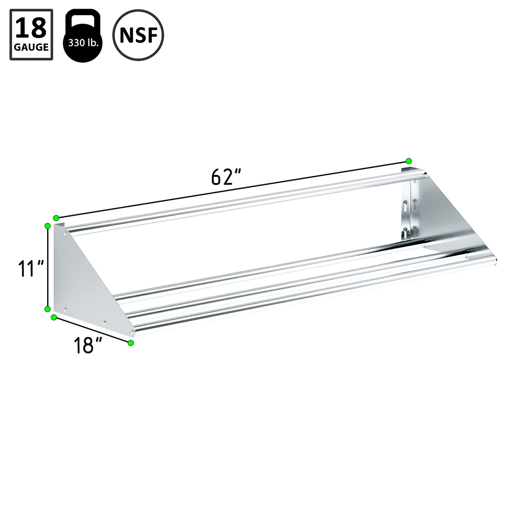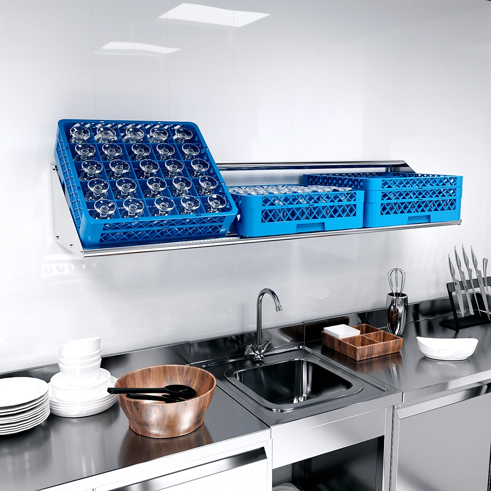 Ideal for bars, restaurants, or kitchens, this glass rack shelf maximizes space while ensuring easy access to glasses. The 62-inch length provides ample storage capacity without taking up unnecessary space, making it a versatile choice for smaller areas or tight spaces. Its open tubular construction promotes airflow, helping to keep glassware clean and dry.
