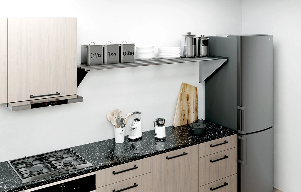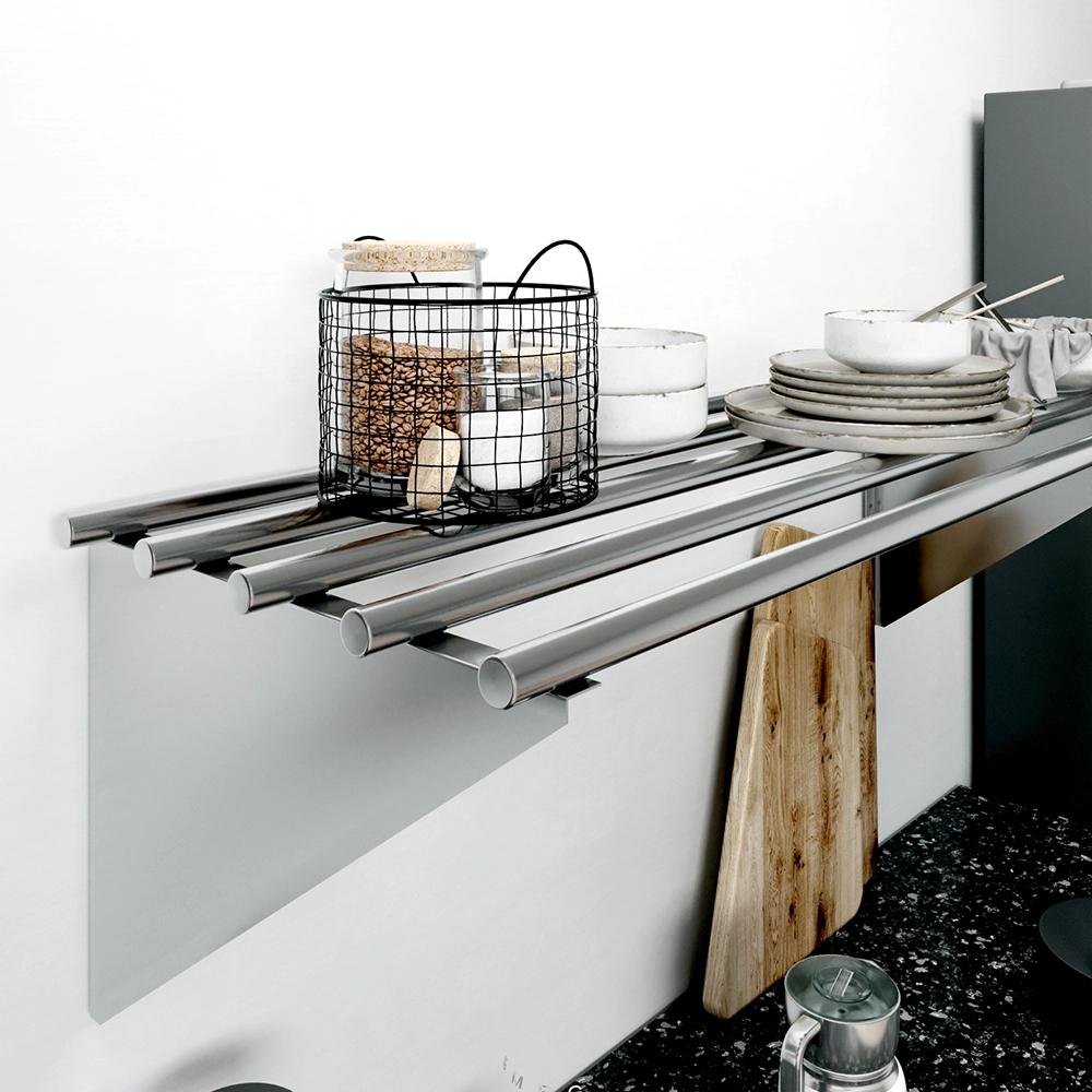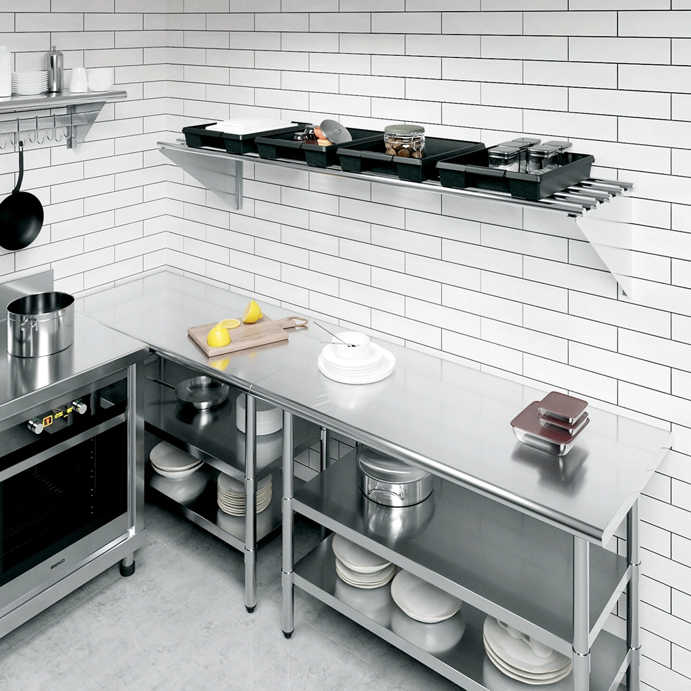Maintenance is a breeze with this stainless steel shelf. The smooth, polished surface is easy to clean, ensuring that it remains hygienic and looking pristine even with frequent use. This low-maintenance feature is particularly beneficial in food preparation areas, where cleanliness is essential.