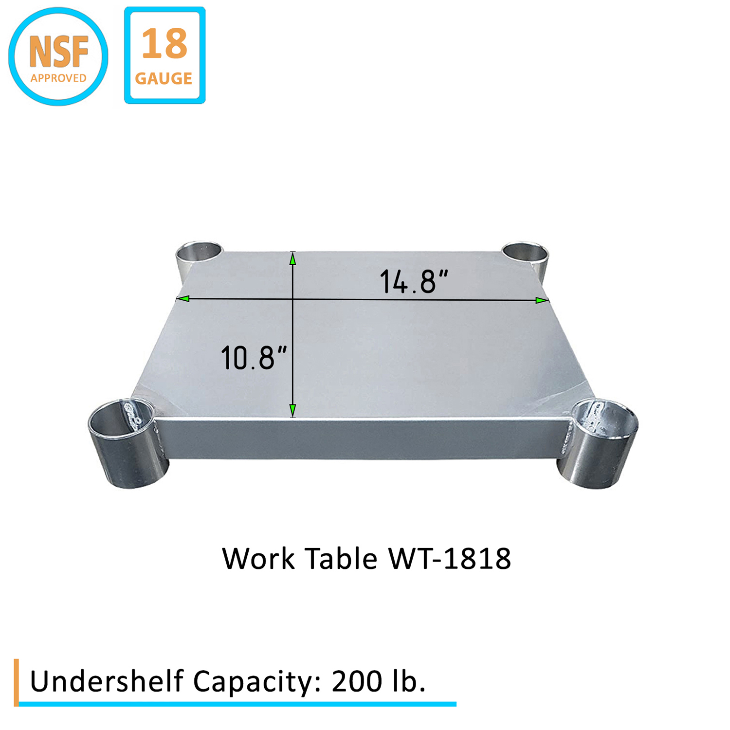 Whether you are outfitting a professional kitchen, a bustling workshop, or a commercial setting, the Additional Undershelf for your 18″ X 18″ Stainless Steel Work Table is the perfect solution for maximizing storage and functionality. Experience the benefits of added organization and streamlined workflow with this qualty, reliable undershelf, designed to meet the demands of any busy workspace.